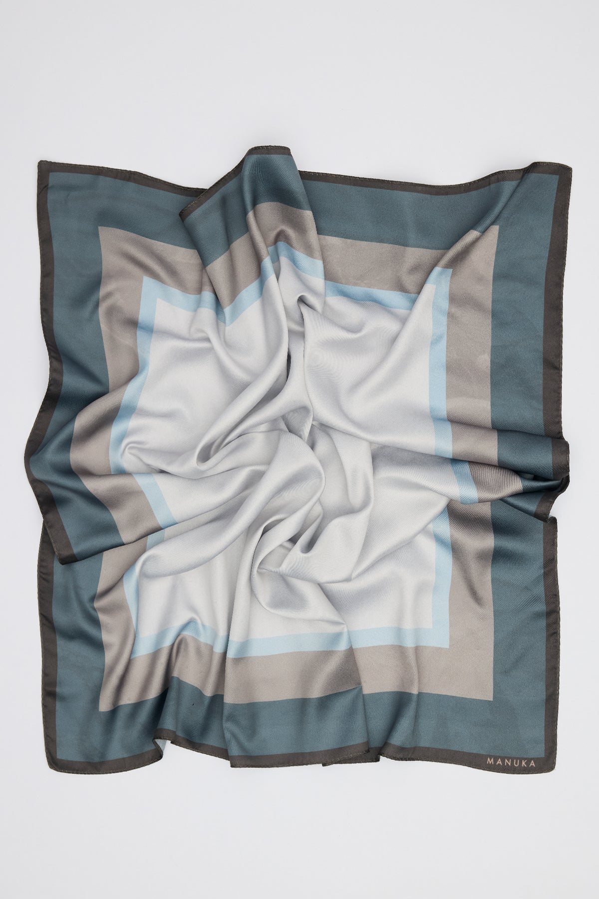 Patterned Mid-Size Satin Scarf Gemma Indigo