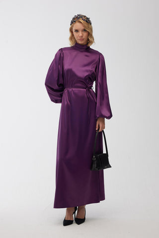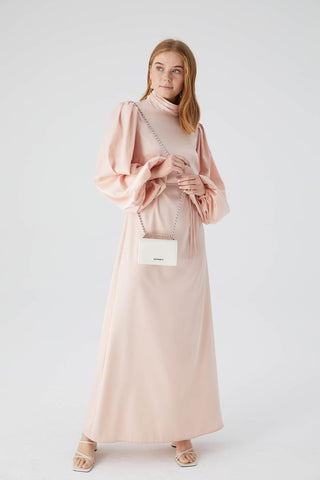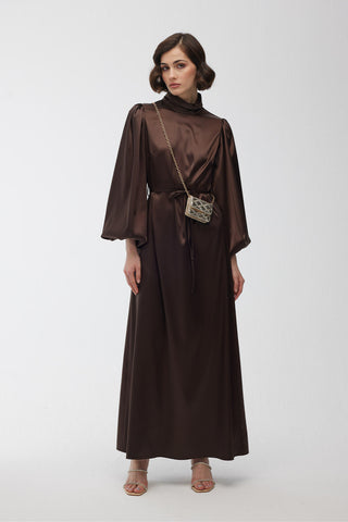 Balloon-Sleeve Long Dress Bark Brown