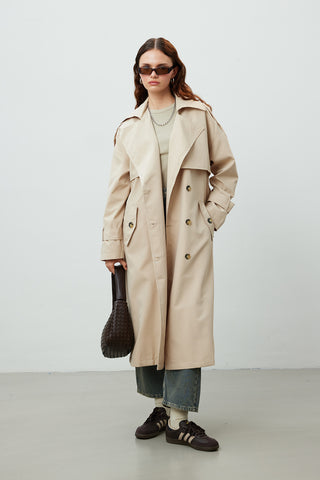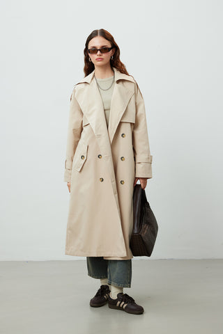 Double-Breasted Trench Coat With Buttons Dark Brown