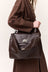 Faux Leather Detailed Canvas Bag Dark Brown