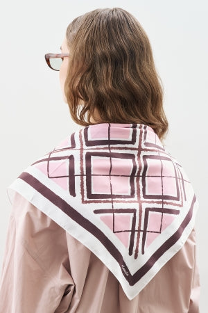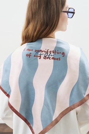 Patterned Mid Size Satin Scarf Nera Indigo