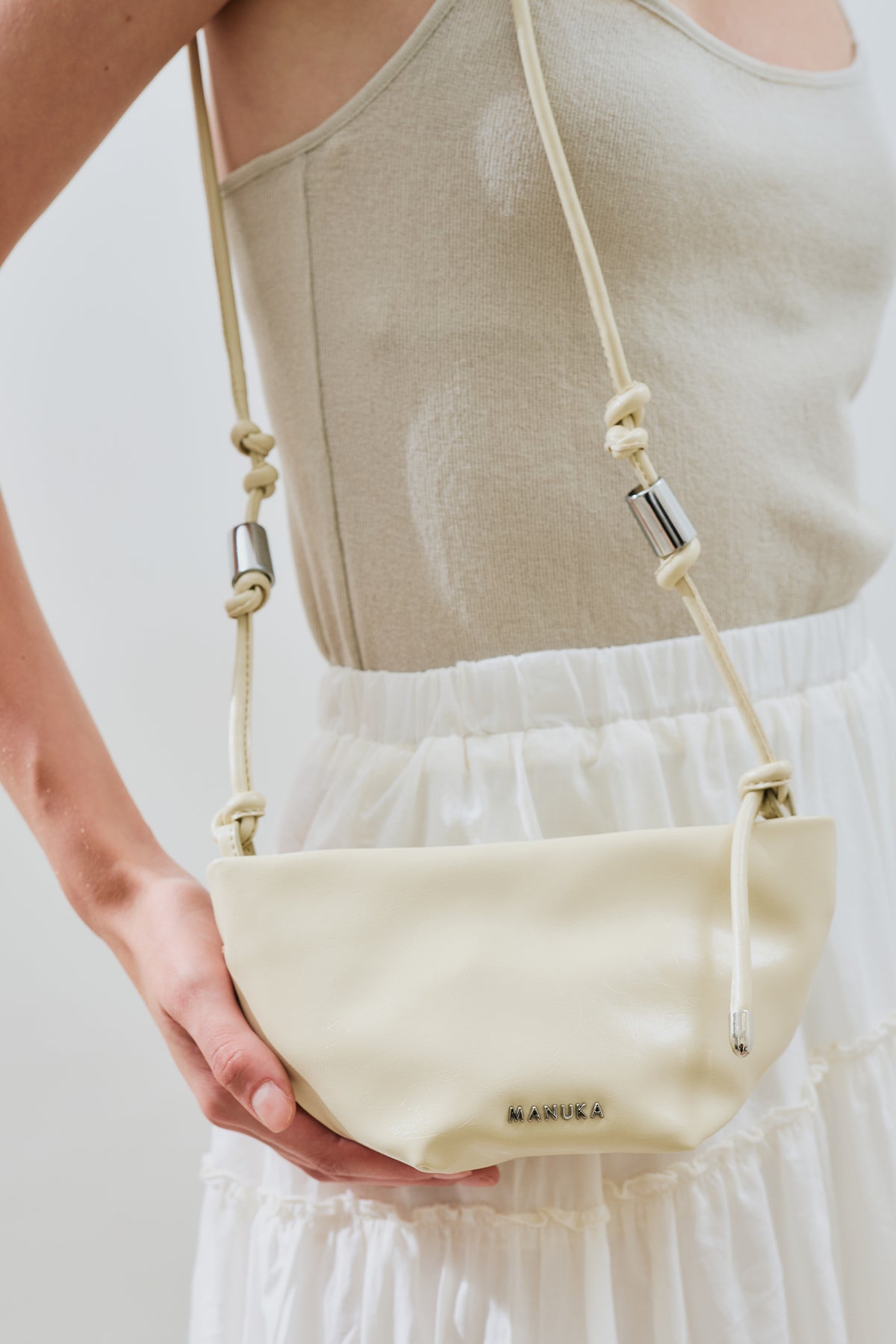 Shoulder strap with knot & metal buckle detail
