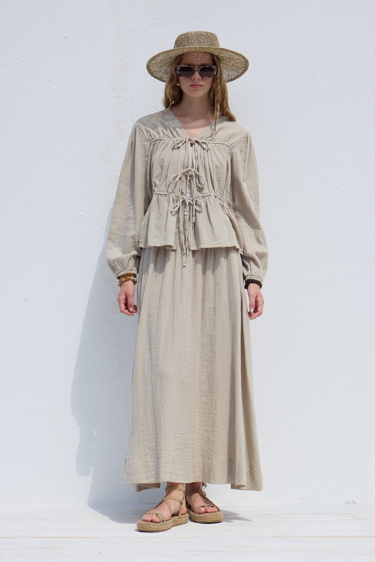 Tie-Detail Muslin Blouse Sand