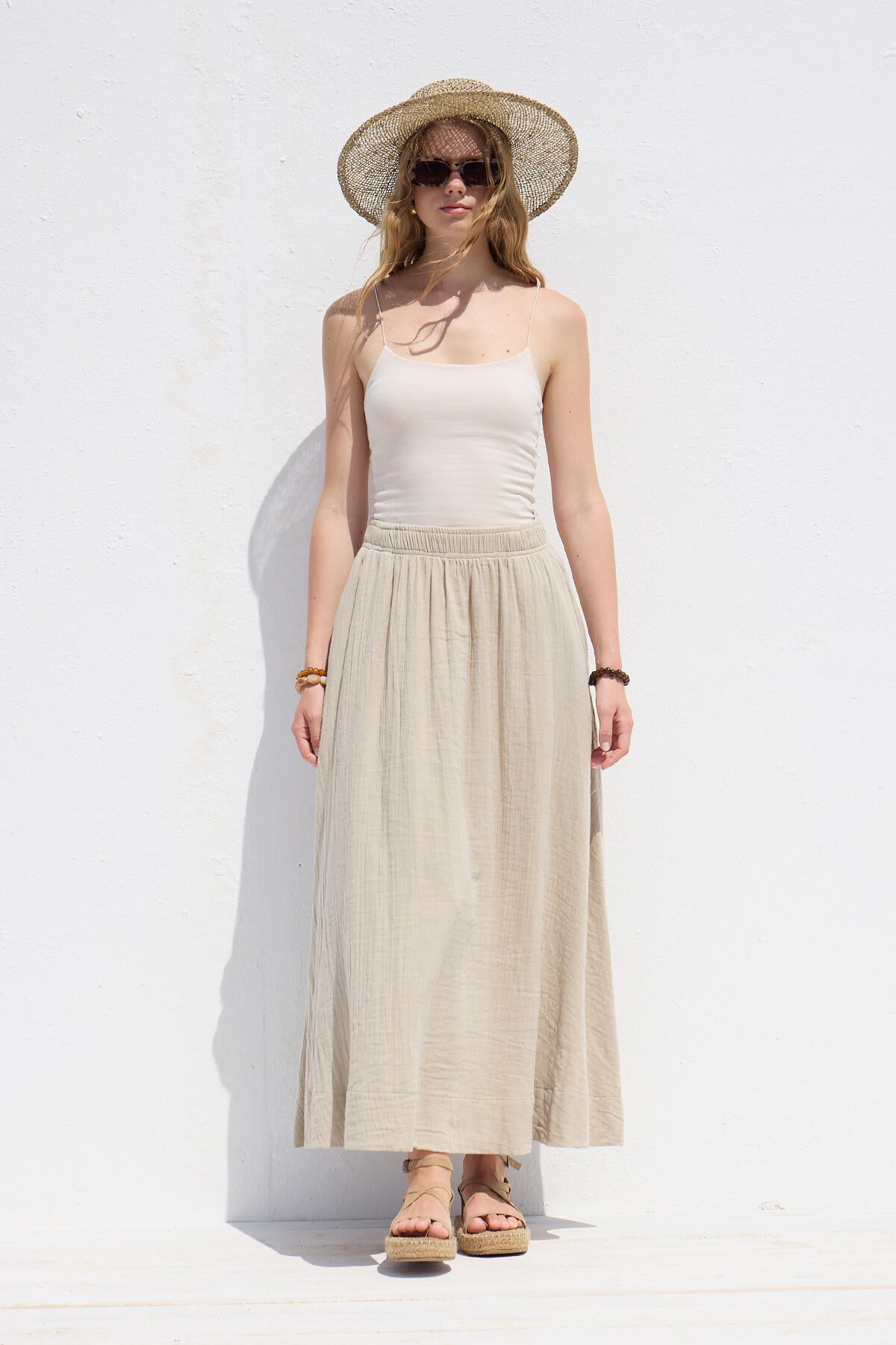Wide Cut Muslin Skirt Sand
