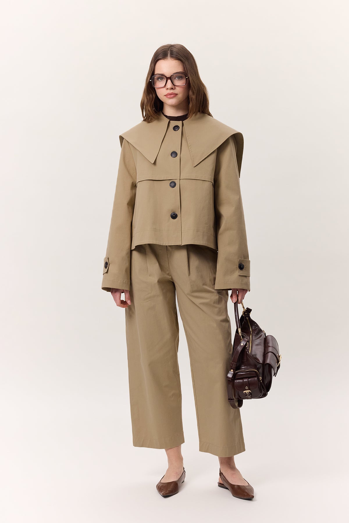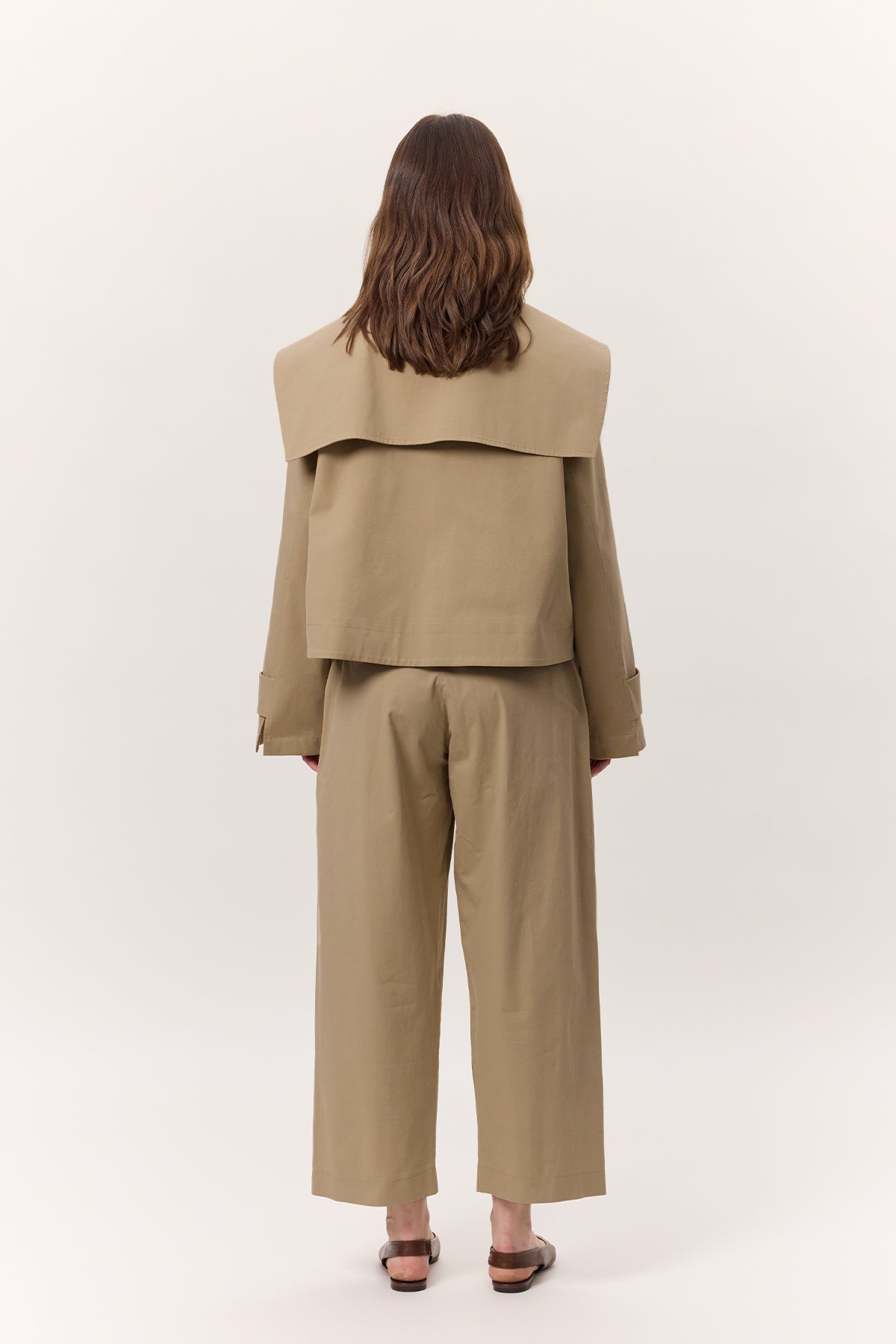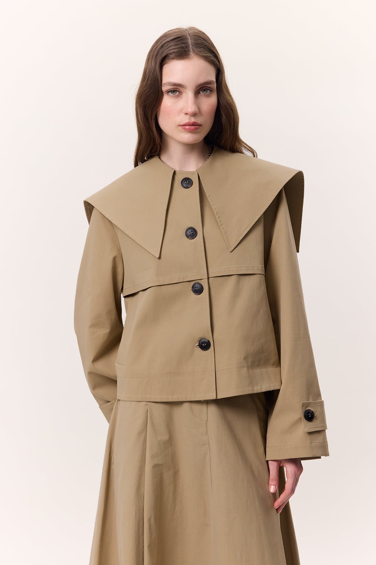 Wide Collar Gabardine Jacket Sand