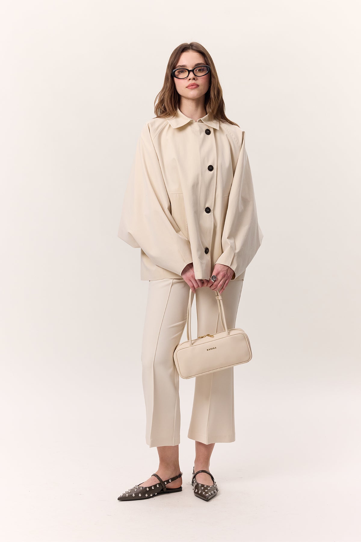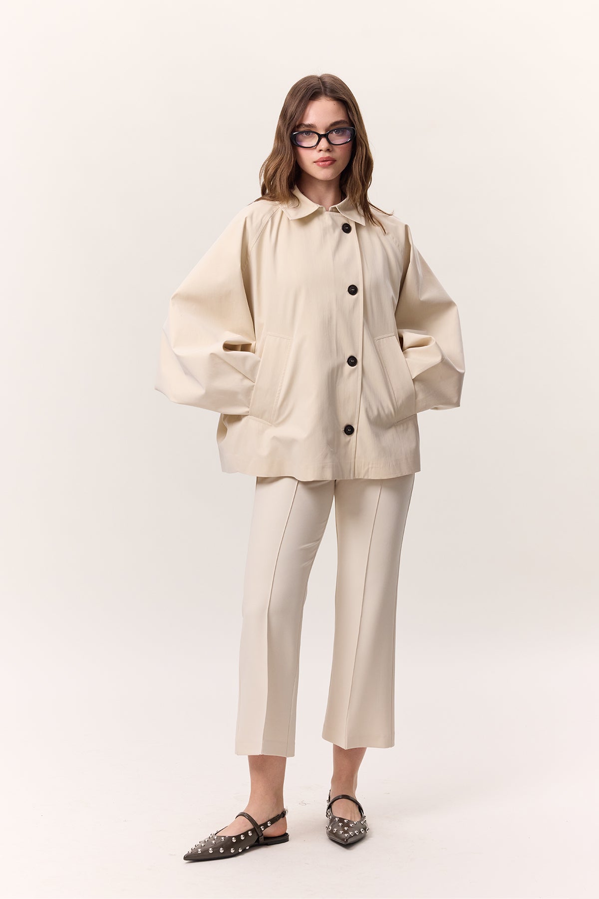 Cape Sleeve Cropped Trench Coat Soft Yellow