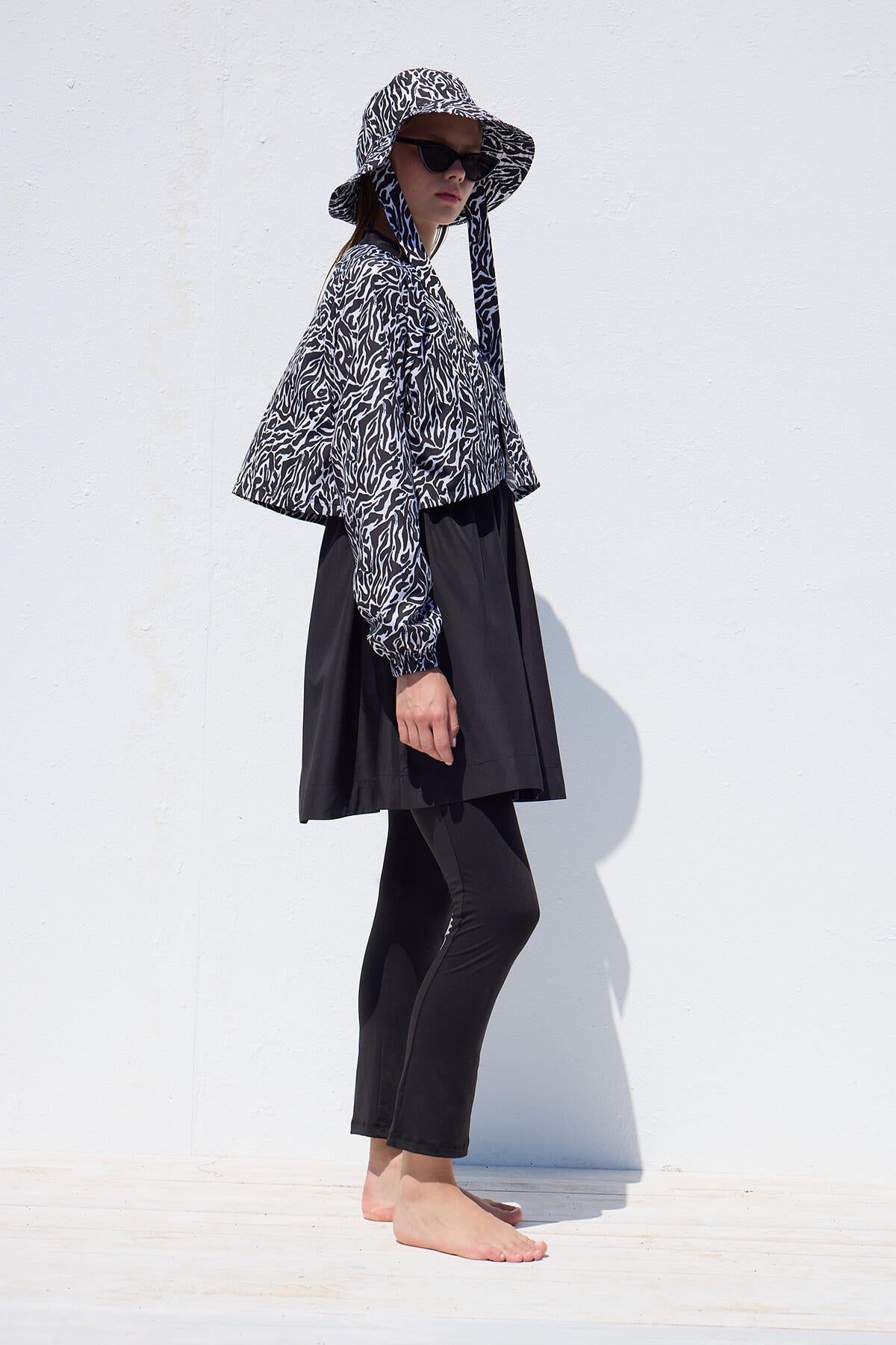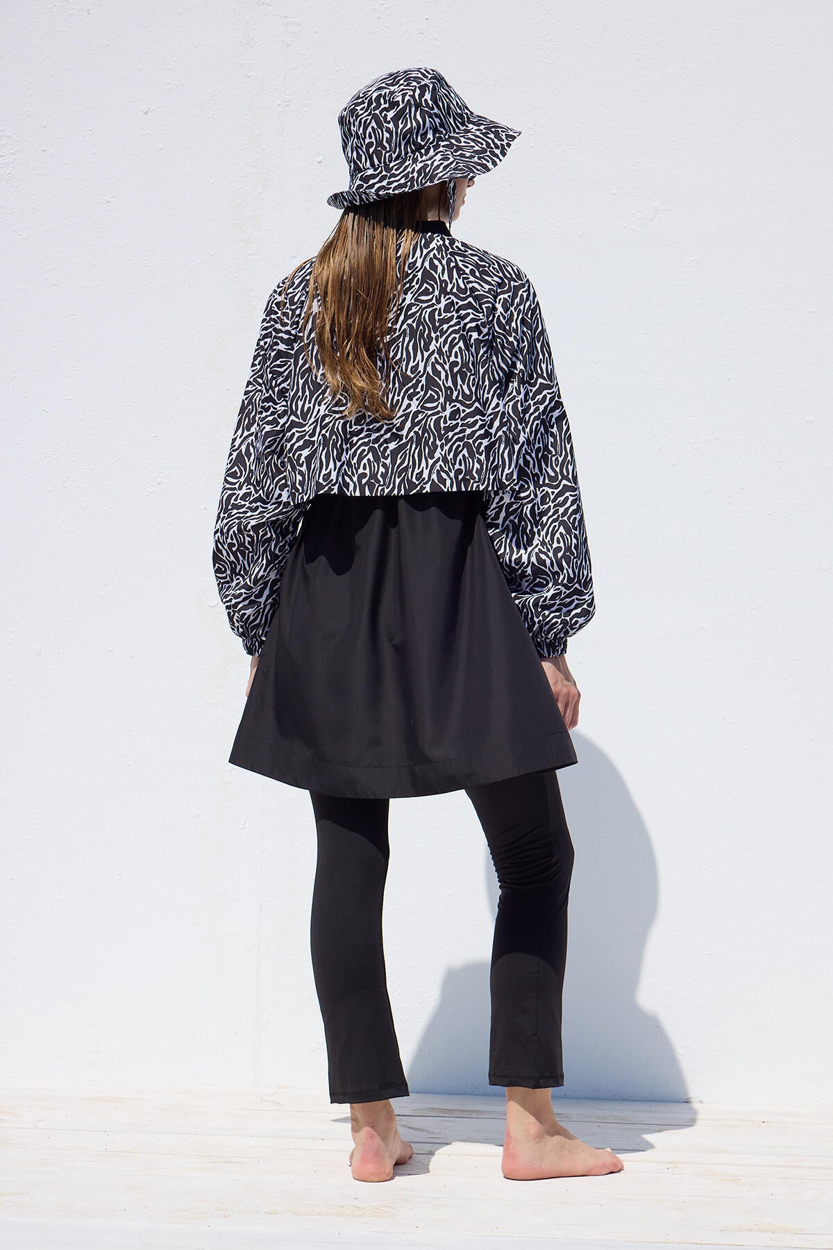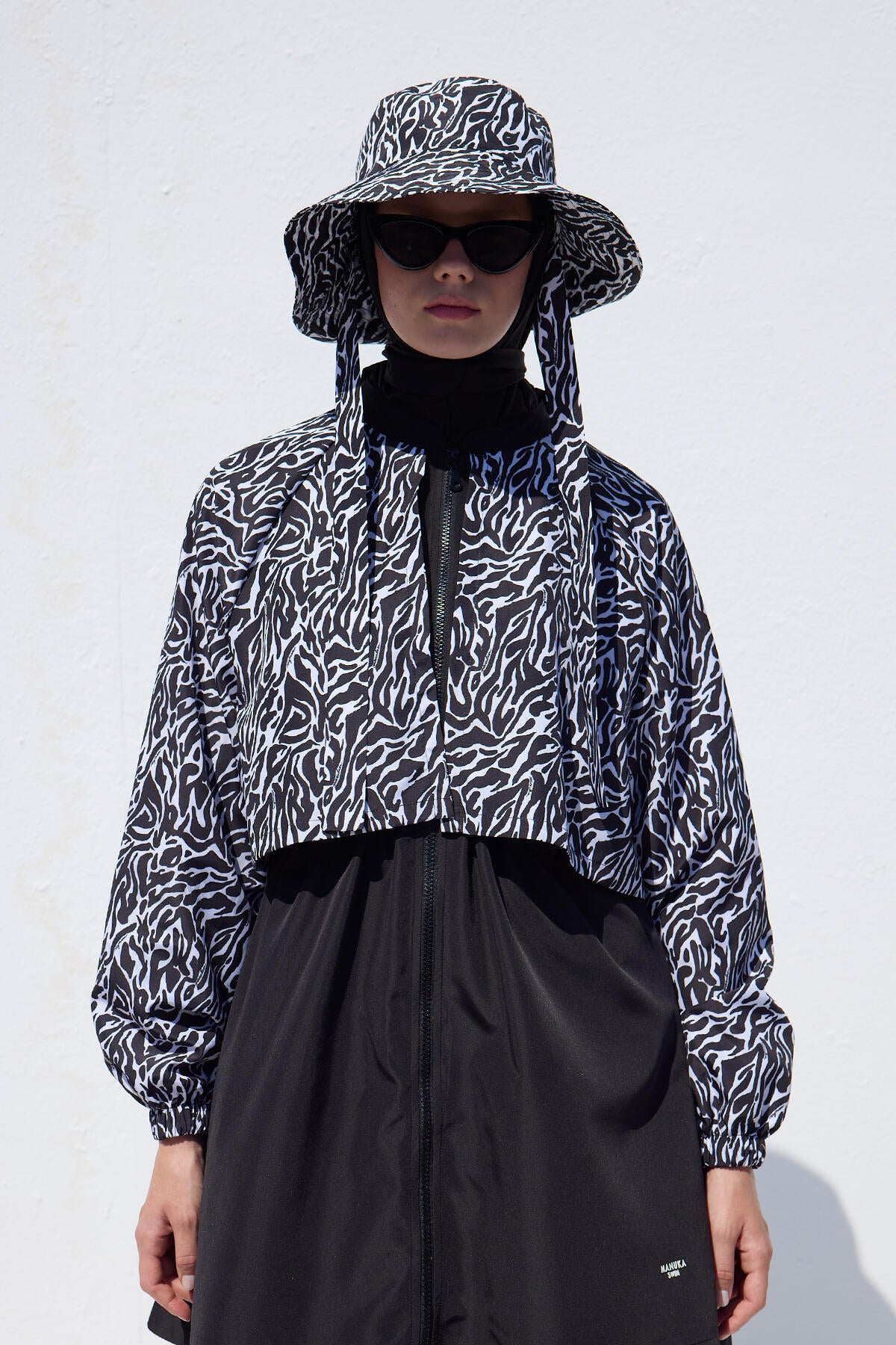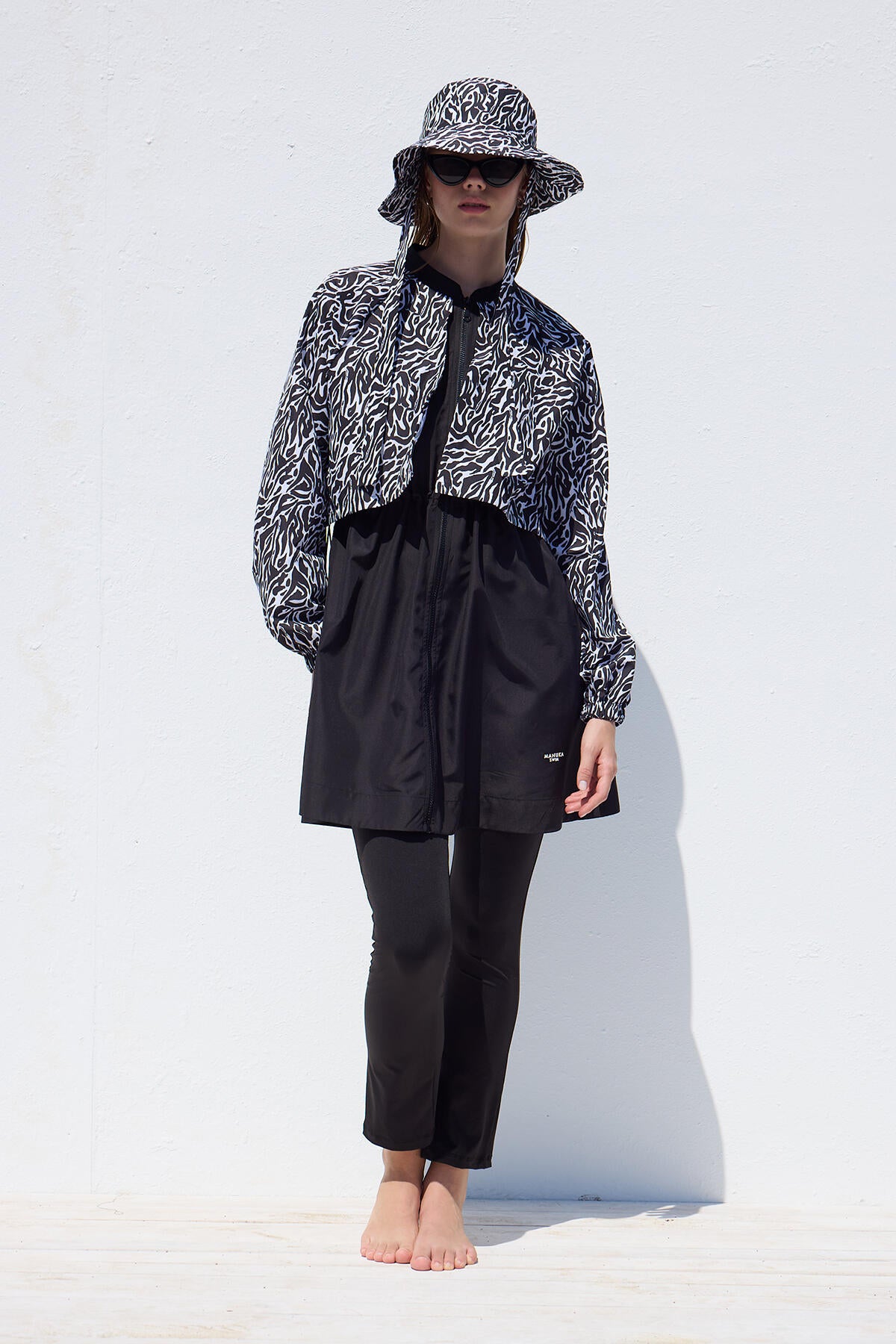 3 Piece Modest Swimsuit Set With Windbreaker Zebra