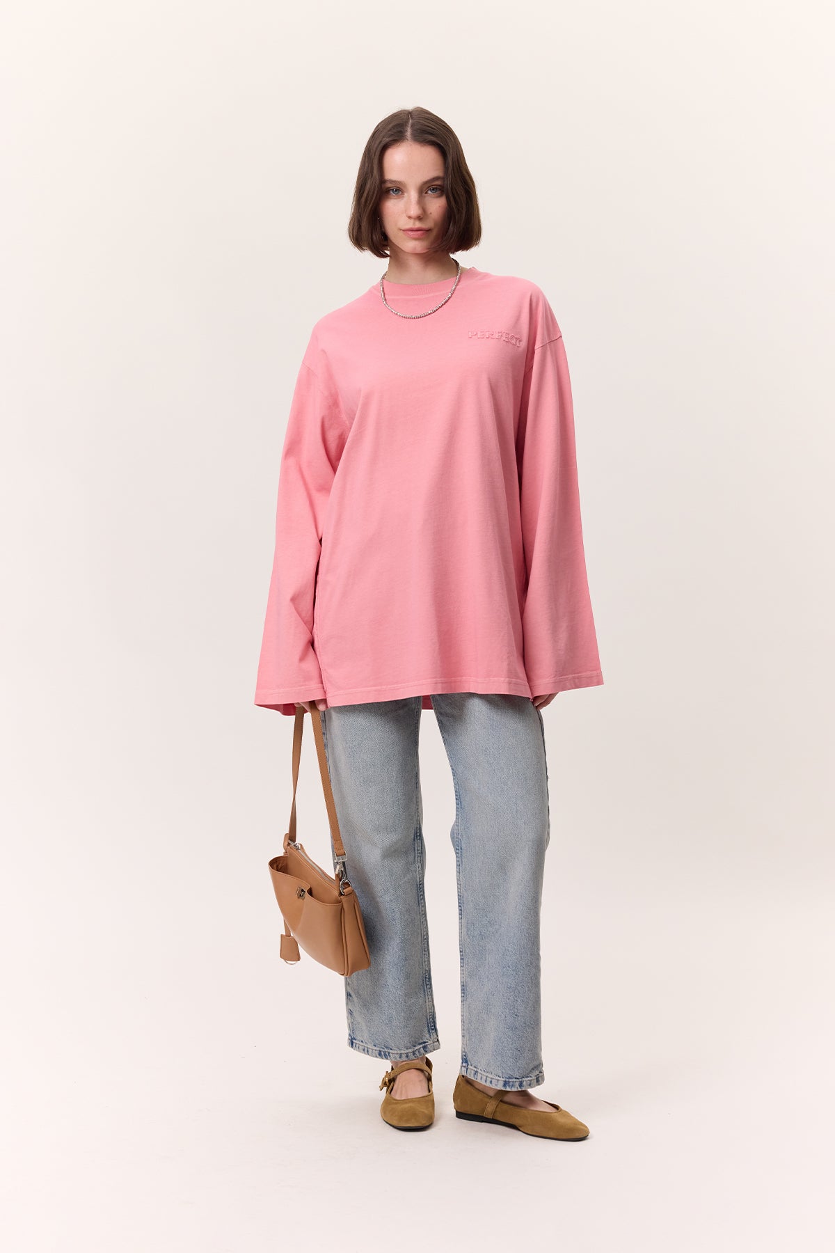 Washed Effect Long-Sleeve T-Shirt Pink
