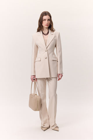 Double-Breasted Classic Blazer Jacket Beige