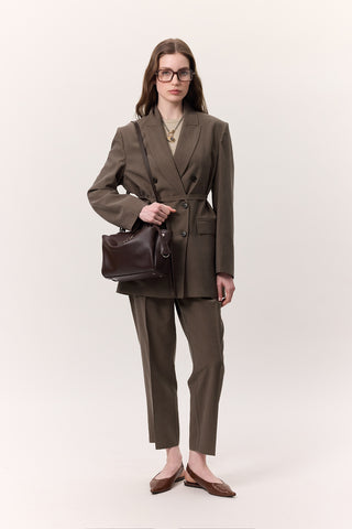 Tencel Belted Double-Breasted Blazer Dark Brown