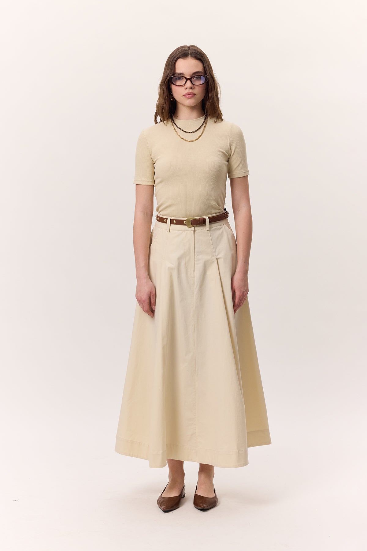 Short-Sleeve Ribbed Bodysuit Beige