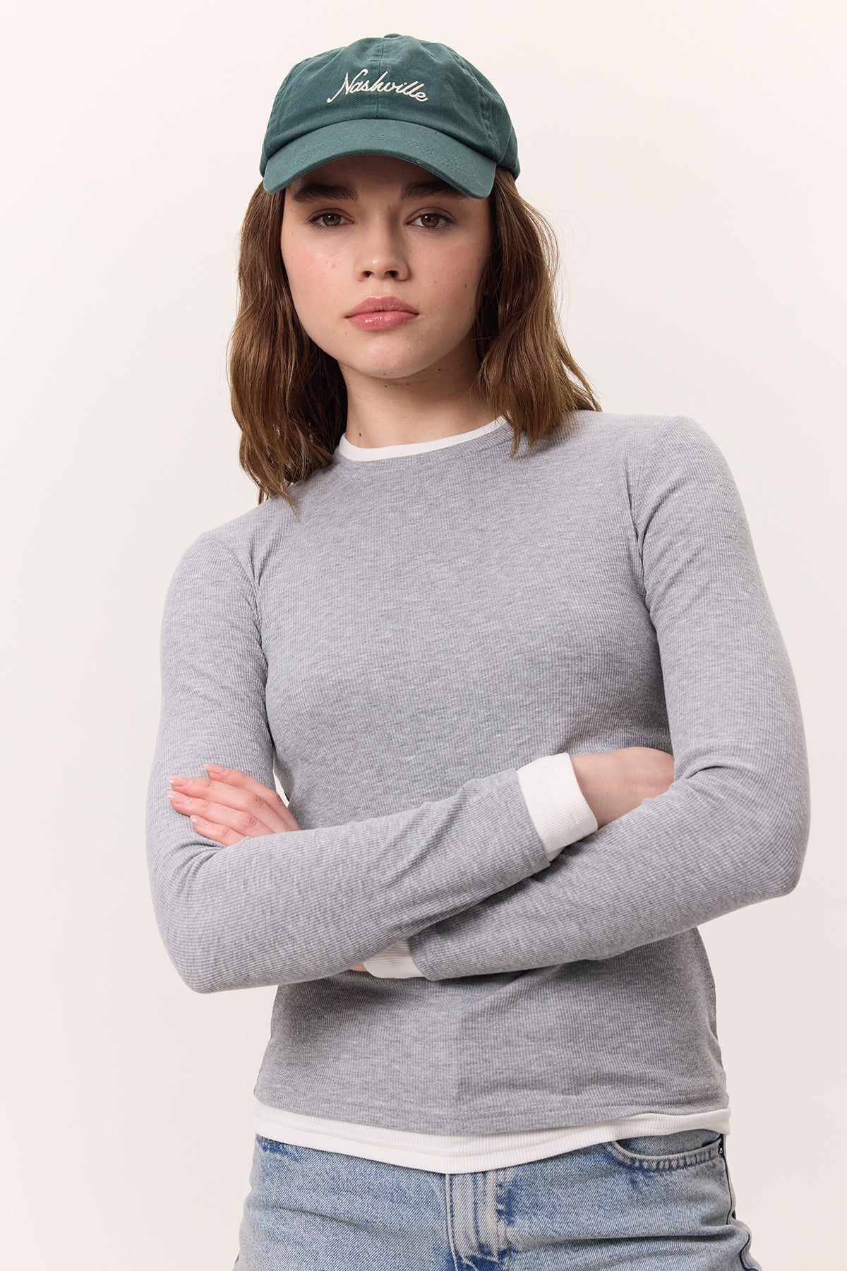 Long-Sleeve Paneled Bodysuit Grey Melange