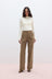 Ribbed Velvet Straight Fit Trousers Vanilla