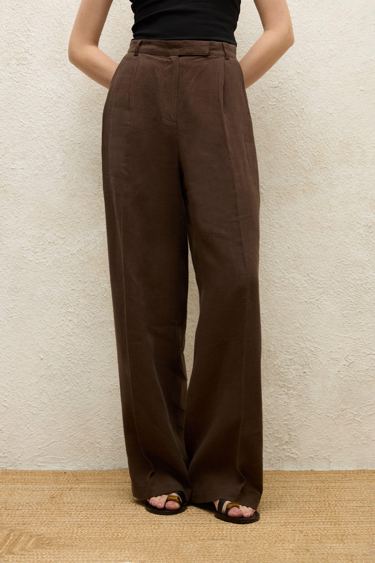 Linen Palazzo Trousers Dark Brown