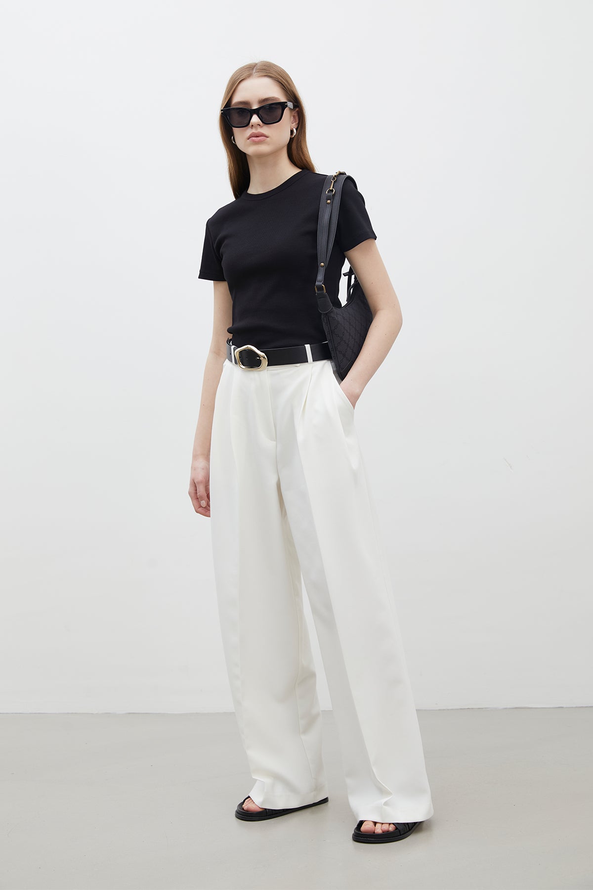 Size 40: Waist: 39 cm, Hip: 50 cm, Leg Opening: 31 cm, Length: 113 cm