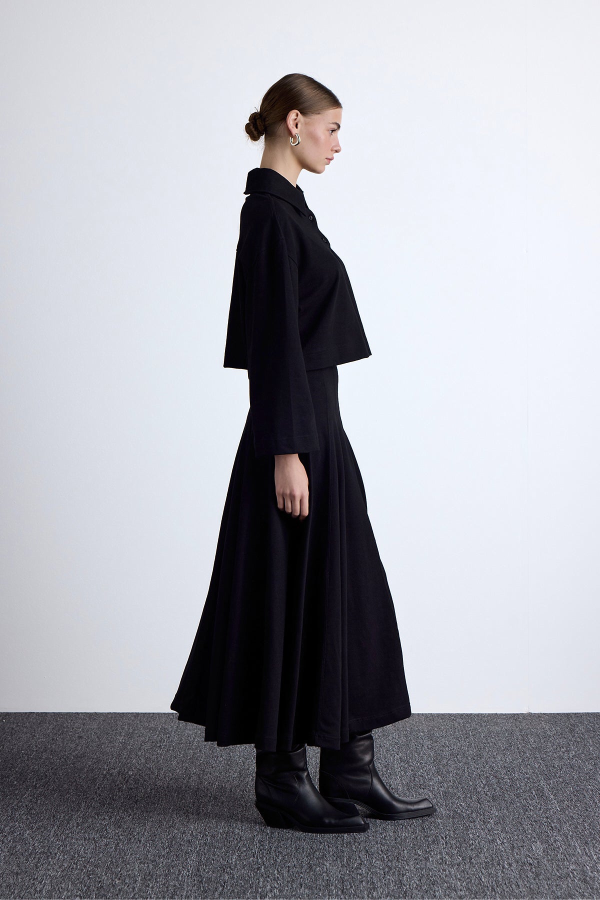 Wide flared ruffle hem
