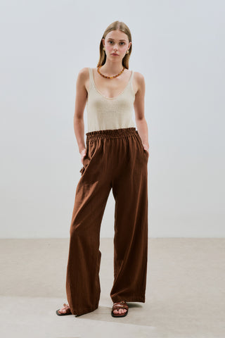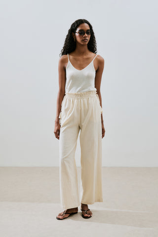 Manuka's collection of trousers is designed for the modern woman who values both comfort and style. Whether you're looking for tailored trousers for a professional setting, relaxed wide-leg pants for a casual day out, or trendy culottes to make a fashion statement, we have something for everyone. Our trousers are crafted from high-quality fabrics that drape beautifully and feel luxurious against the skin. Browse our selection of trousers and discover the perfect pair to complement your existing wardrobe.