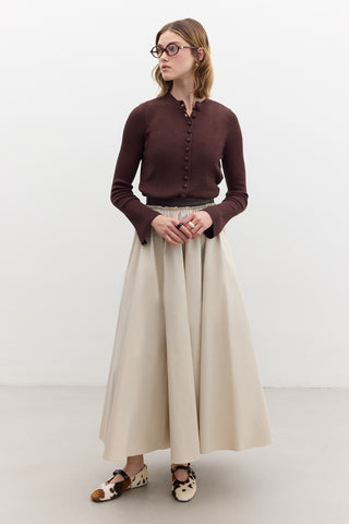Cotton Tie-Waist Wrap Skirt Dark Brown