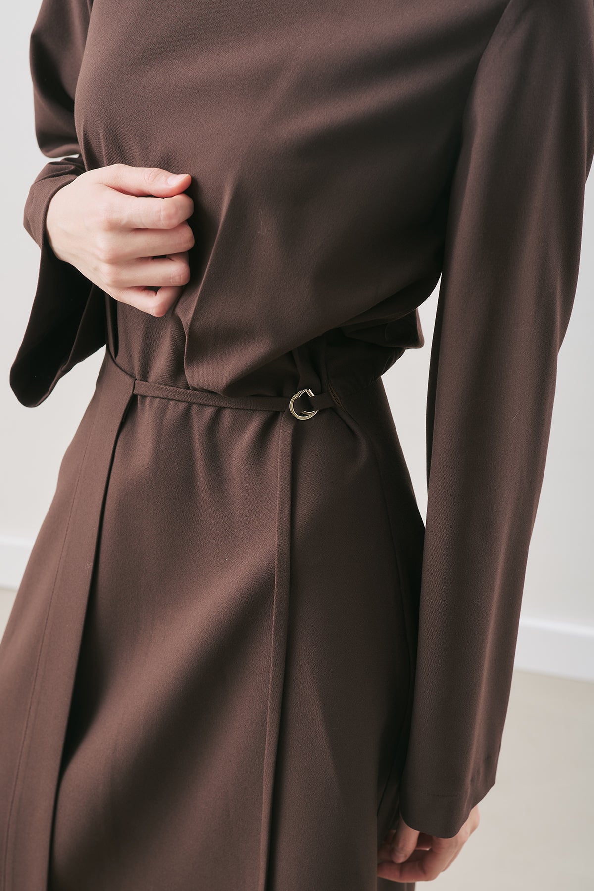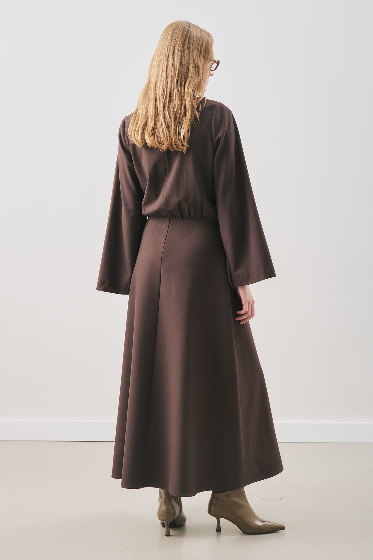 Wrap-Skirt Classic Dress Dark Brown