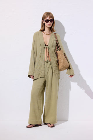 Cotton Tie-Waist Wrap Skirt Dark Brown