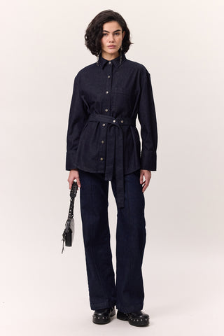 Denim Shirt With Belt Detail Dark Blue