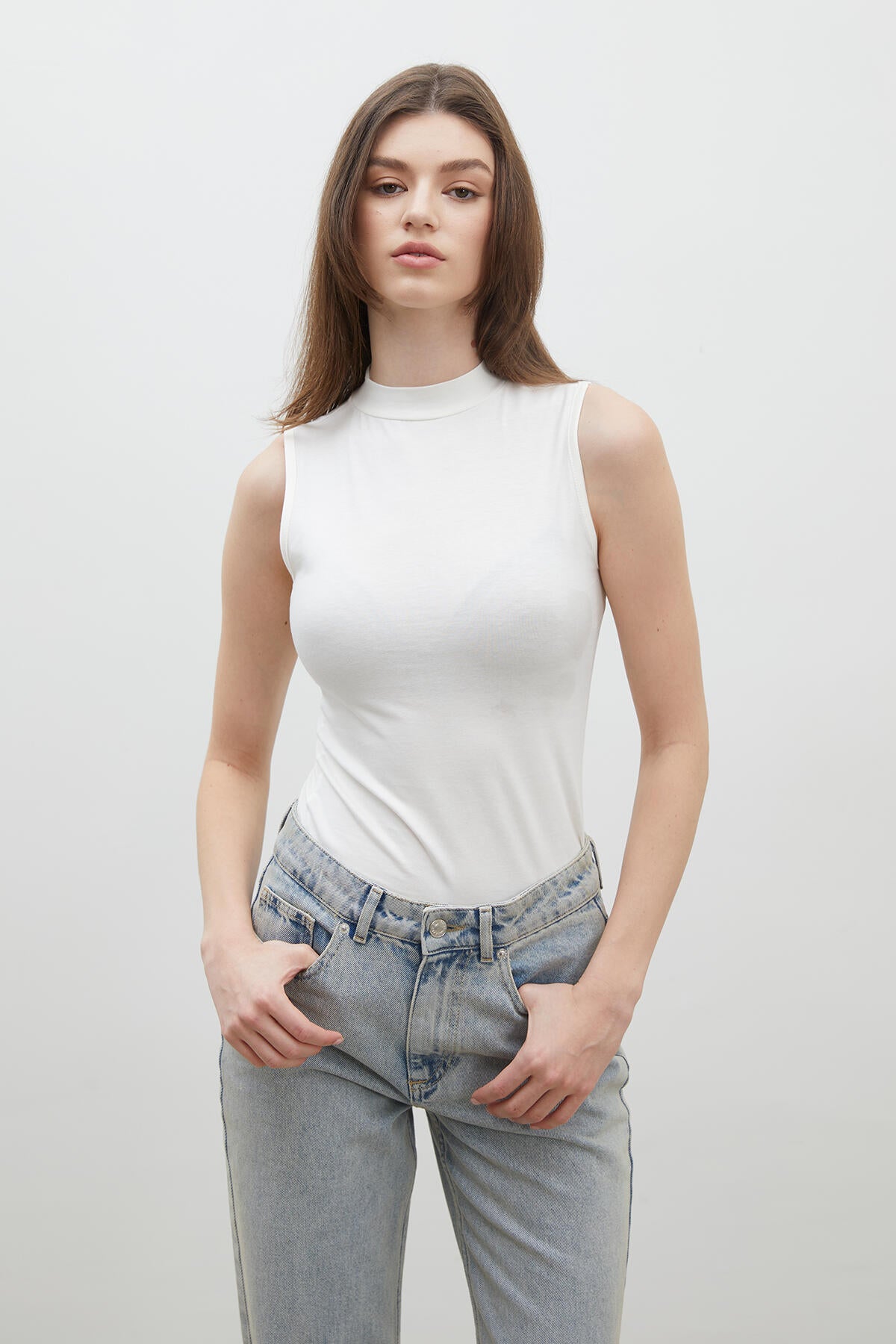 Cotton Sleeveless Bodysuit Ecru