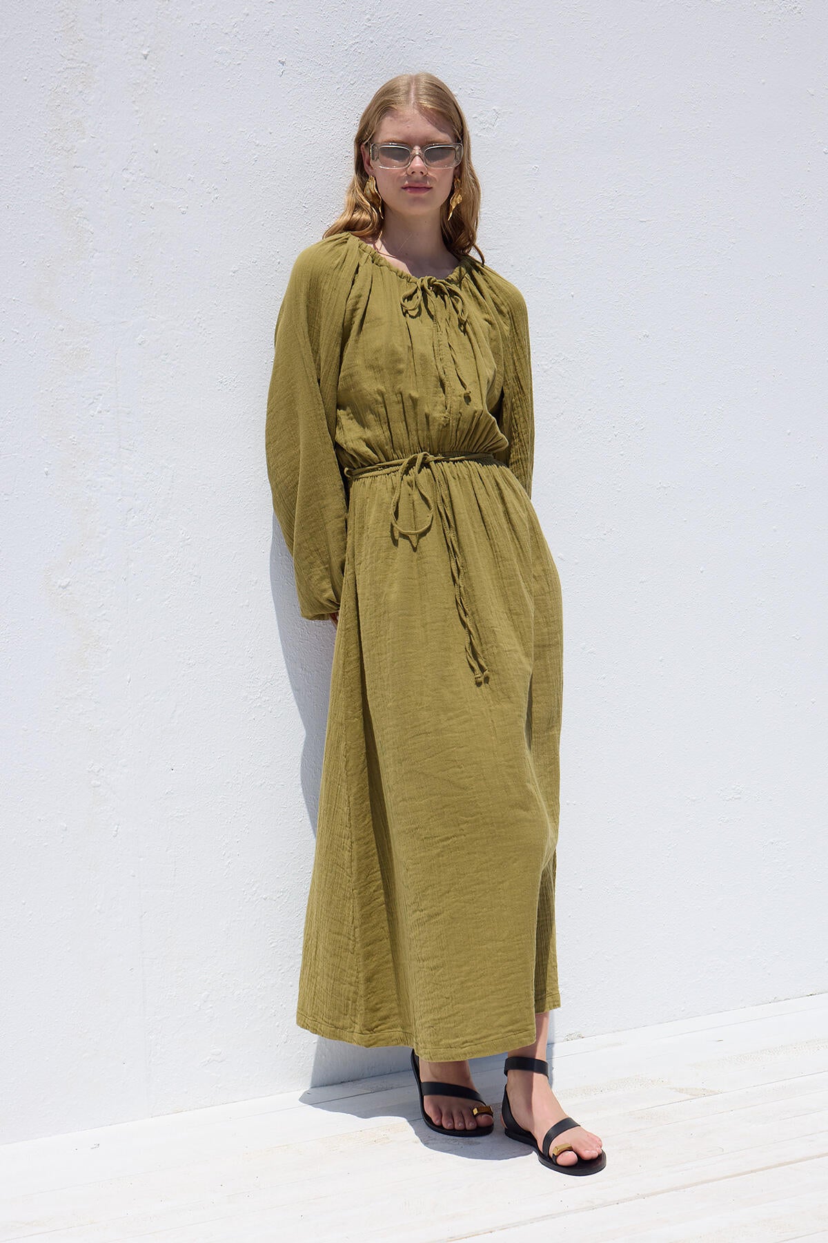 Tie Detail Muslin Dress Green