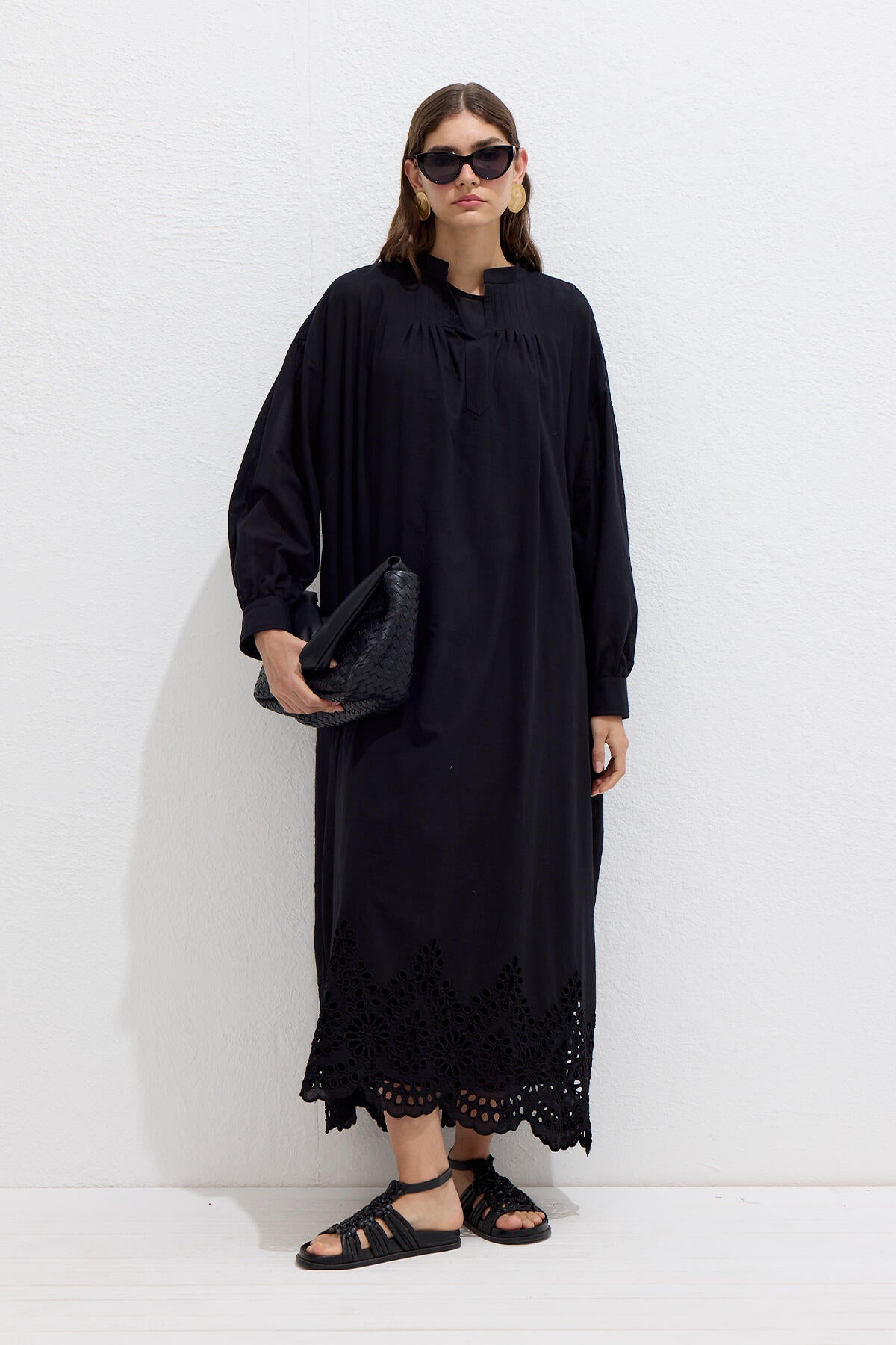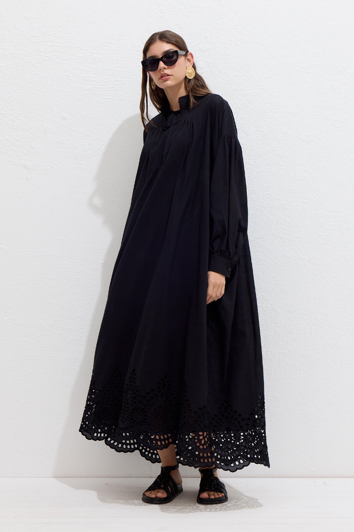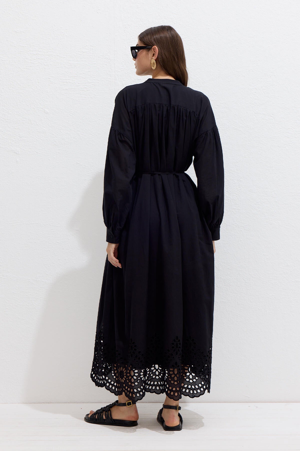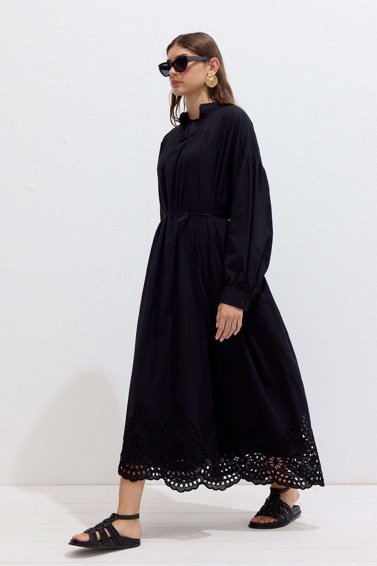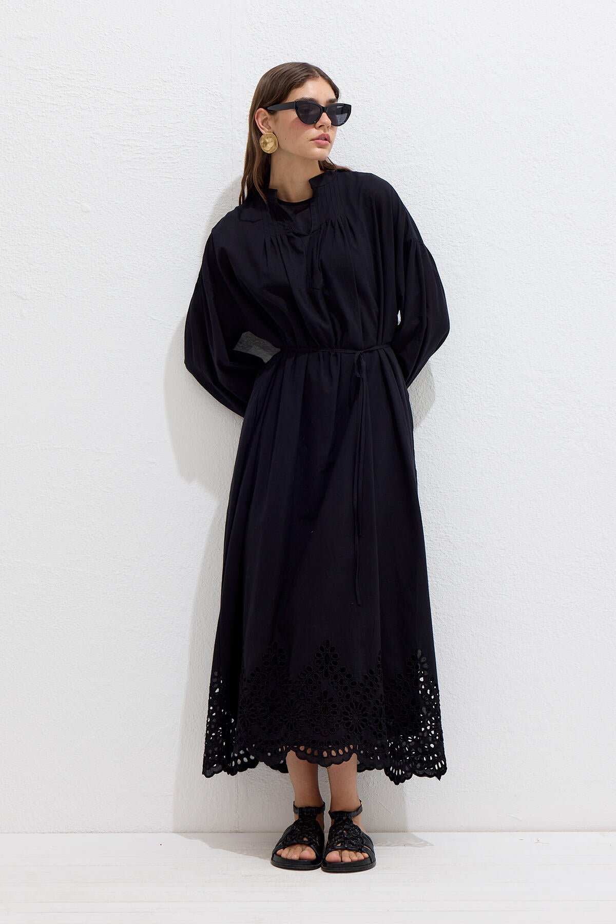 This is a set product. The package includes 1 dress and 1 lining dress. The dress features a lace hem, long sleeves, and a belt. The lining dress is sleeveless and comes in a standard size. Made from cotton voile fabric.