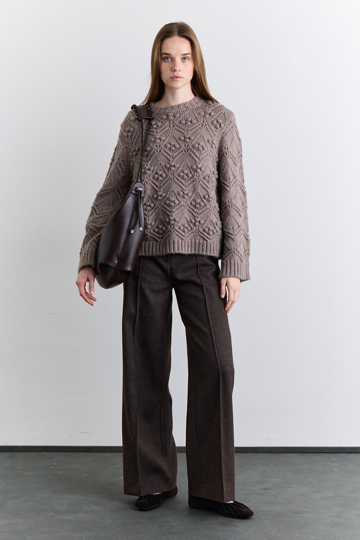 Pointelle Knit Sweater Mink