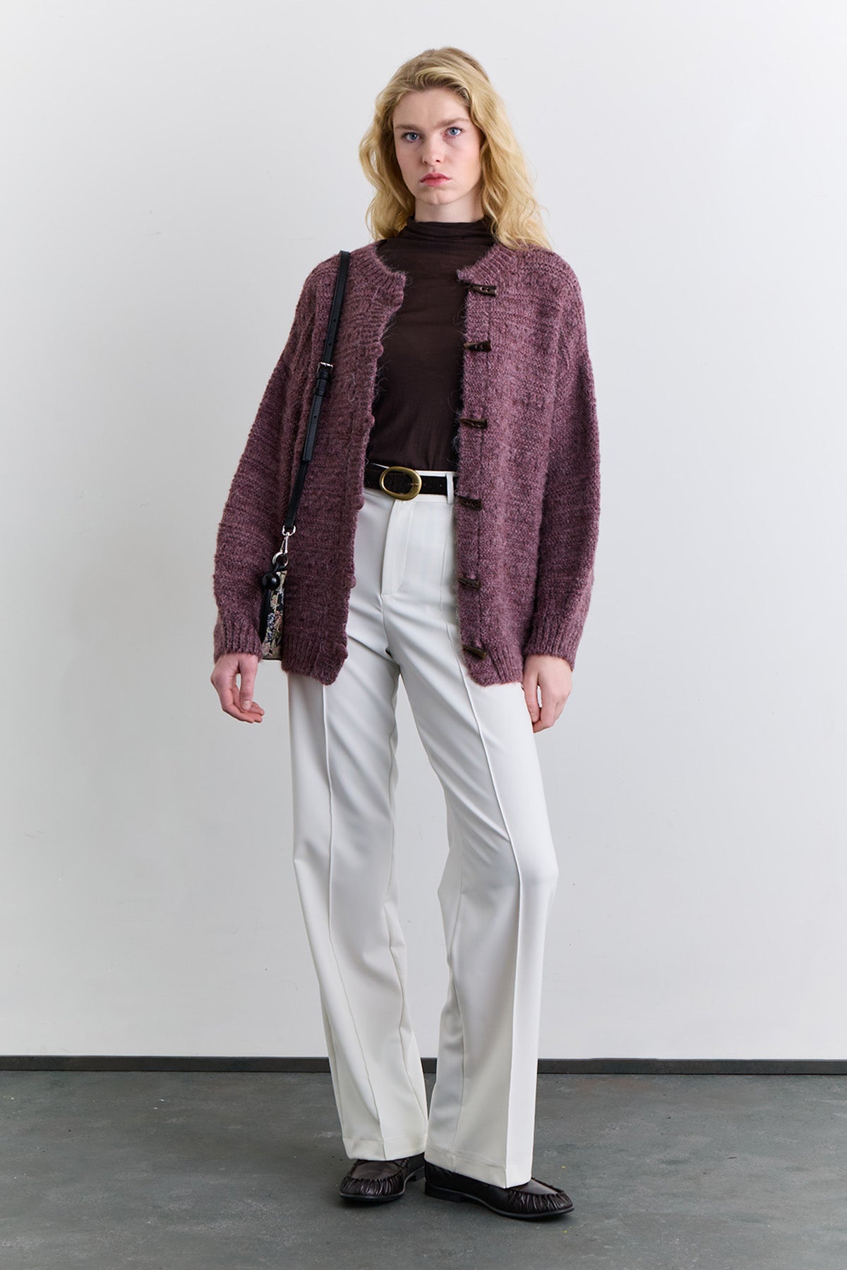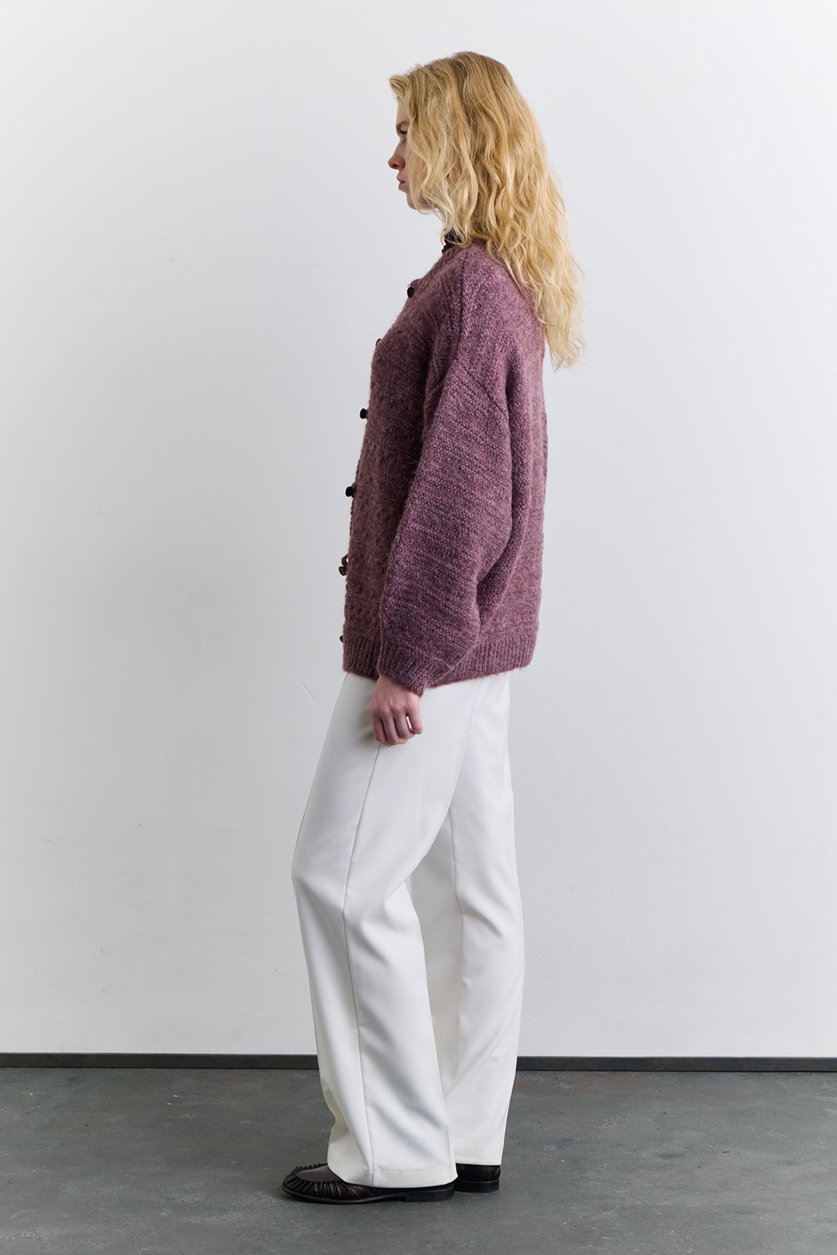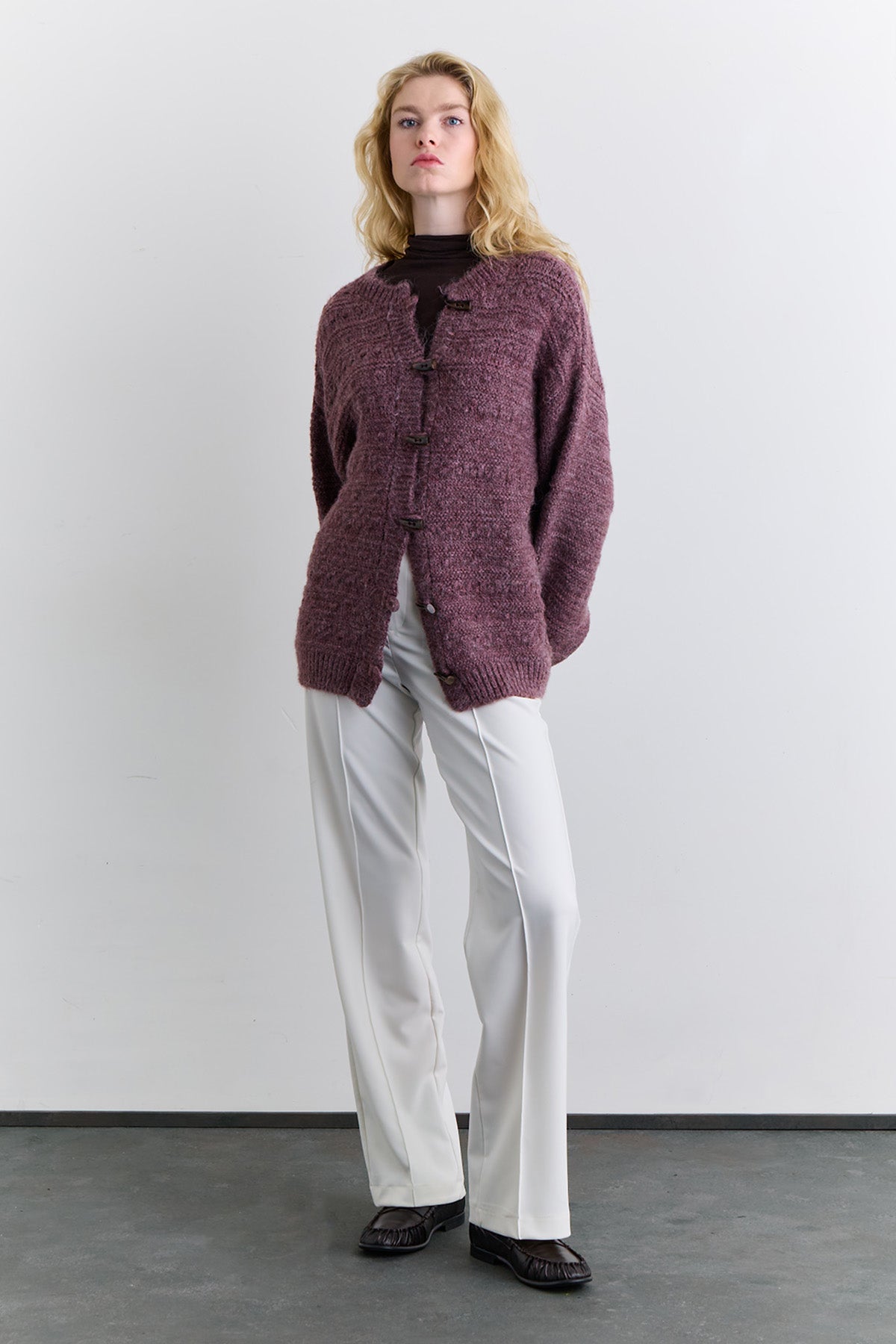 Chunky Button Knit Cardigan Burgundy