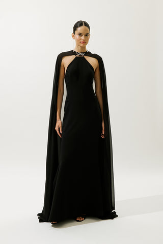 Cape Flower Detail Evening Dress Night Blue