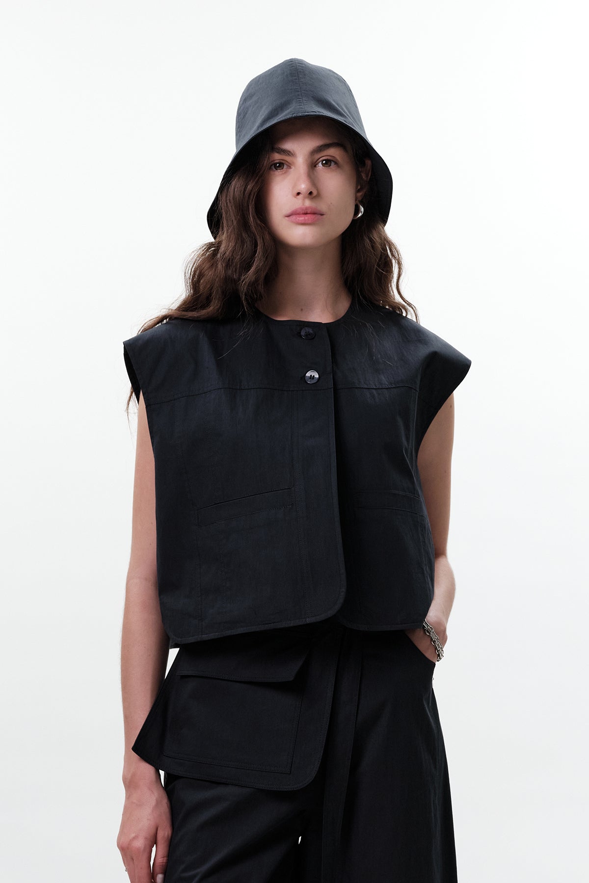Elastic Trim Bucket Hat Navy Blue