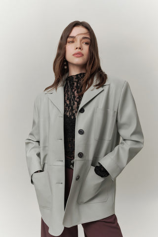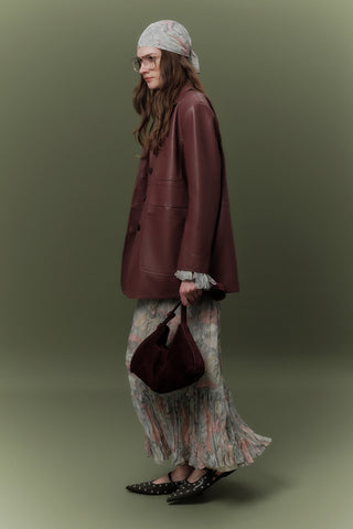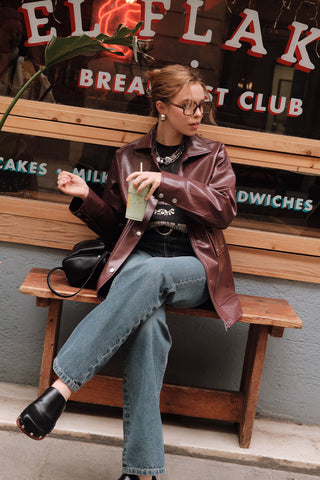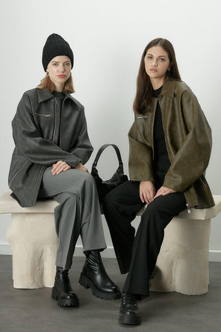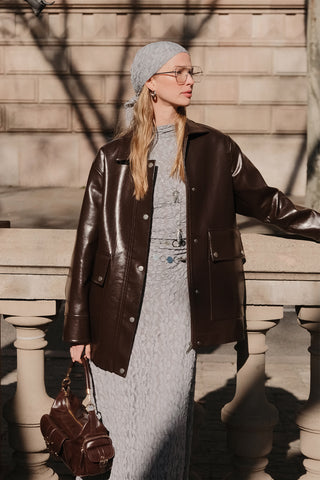Retro Oversized Leather Jacket Dark Brown