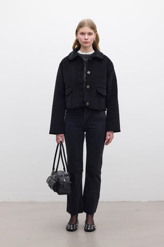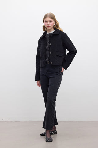 Contrast Collar Gabardine Jacket Black