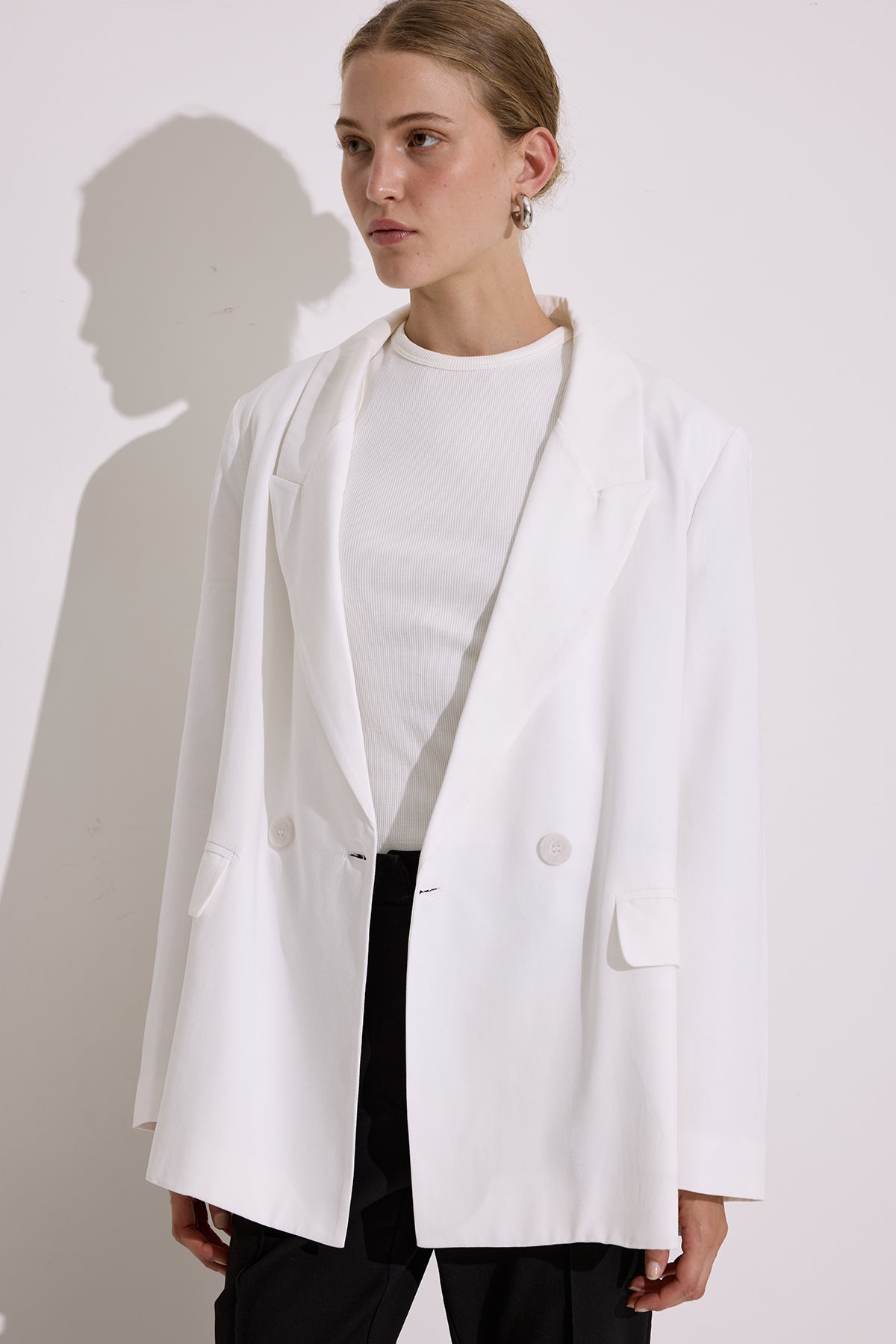 Double-breasted with button detail