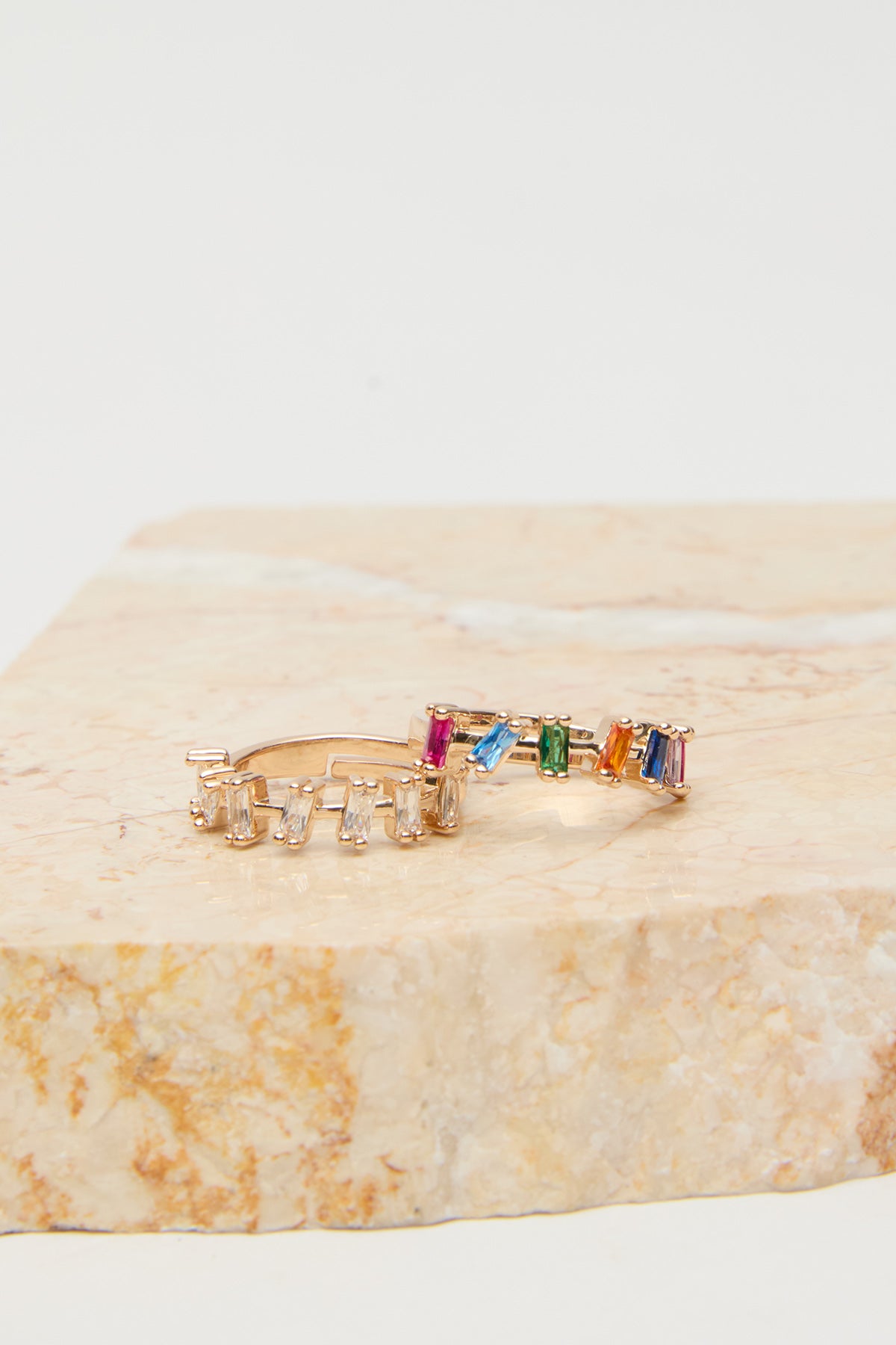Colorful Stone Baguette Ring White