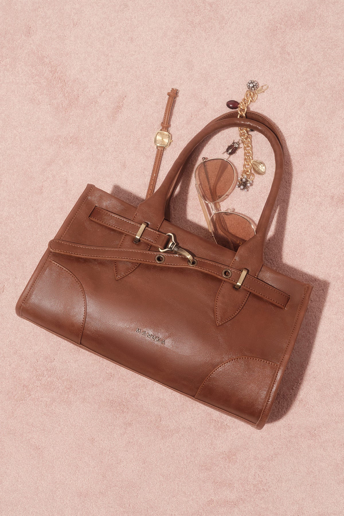 Grace Belted Leather Bag Camel