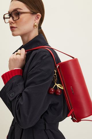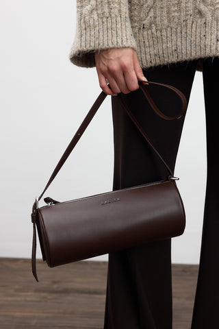 Faux Leather Cylinder Shoulder Bag Dark Brown