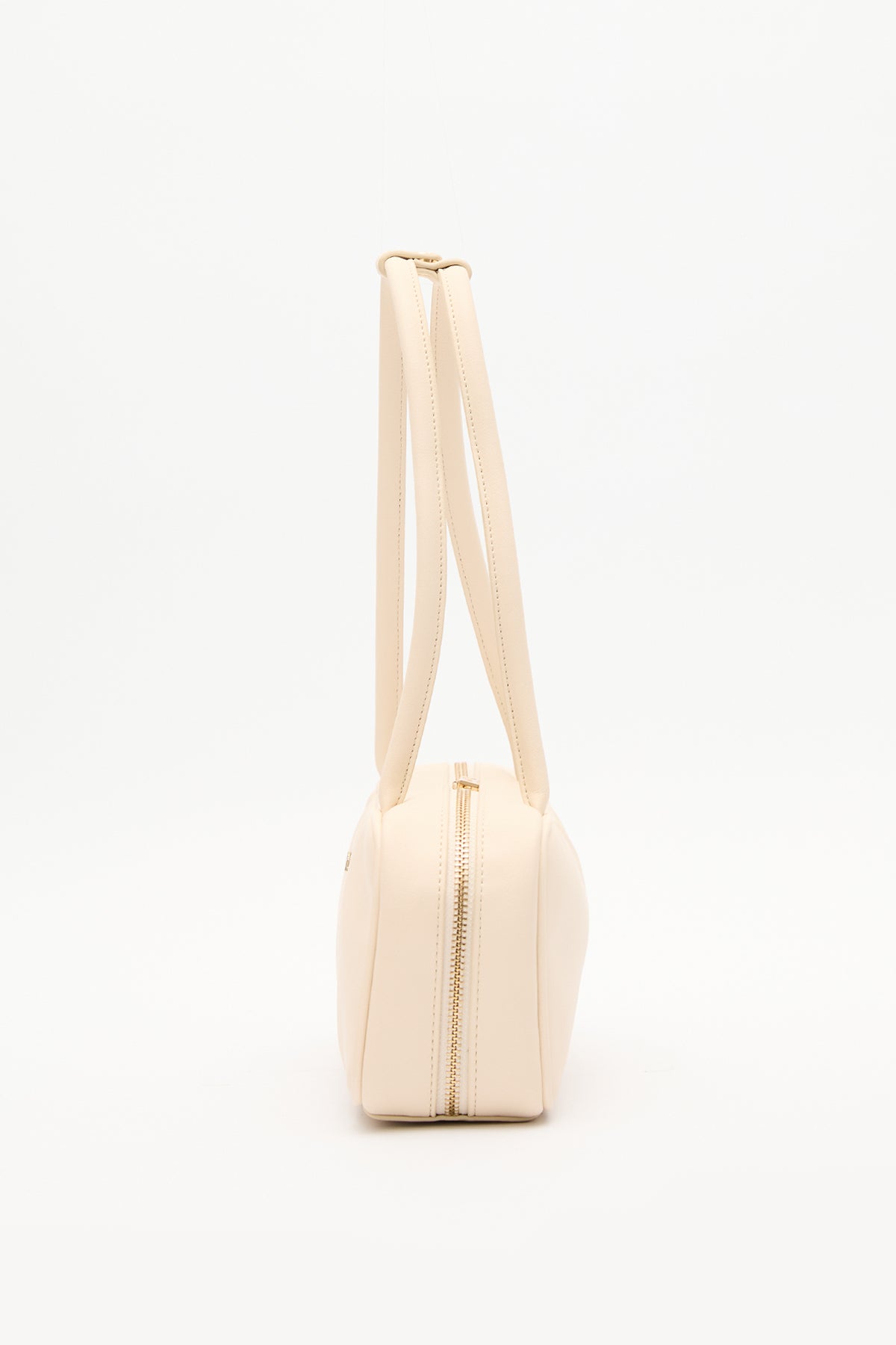 Designed with double zip closures and a sleek, structured silhouette. Features a lined interior with an inner pocket for essentials, and a snap-fastened strap with subtle logo detailing. Accented with gold-tone zippers and snap buttons.
