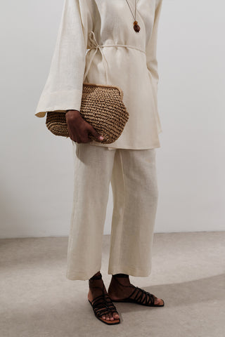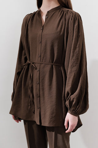 Pleated Wide-Leg Linen Trousers Dark Brown
