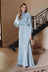 Long Sleeve Shimmer Evening Dress Navy Blue