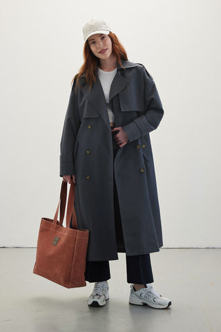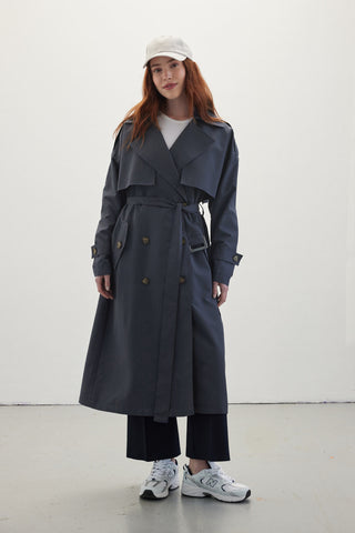 Mari Double Breasted Trench Coat Anthracite
