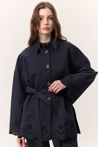 Satin Belted Evening Blazer Night Blue