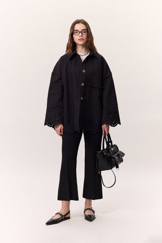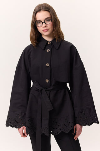 Contrast Collar Gabardine Jacket Black