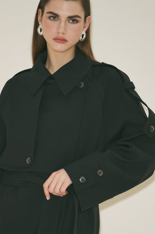 Mari Double Breasted Trench Coat Navy Blue