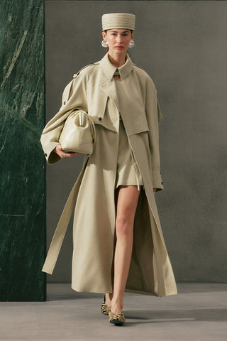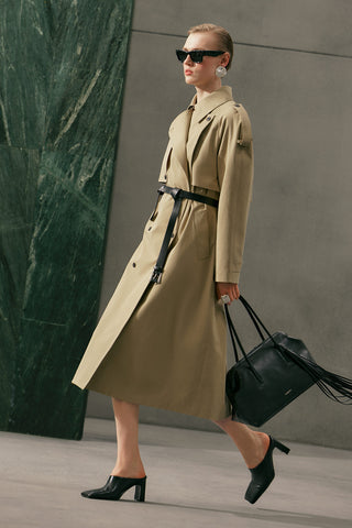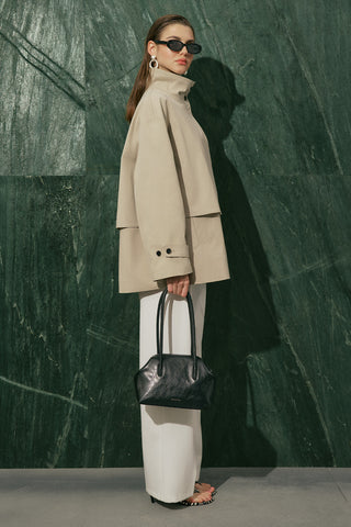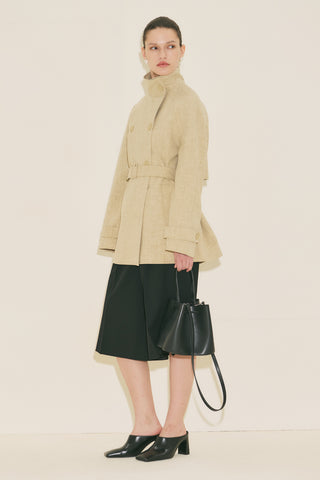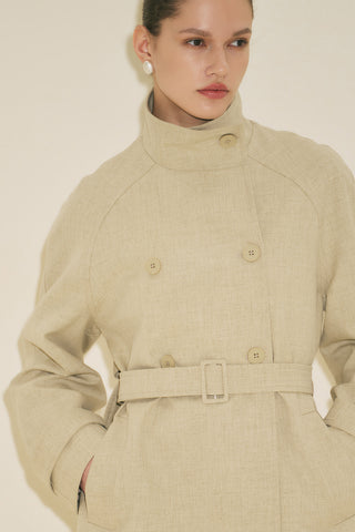 Double-Breasted Cropped Trench Coat Sand