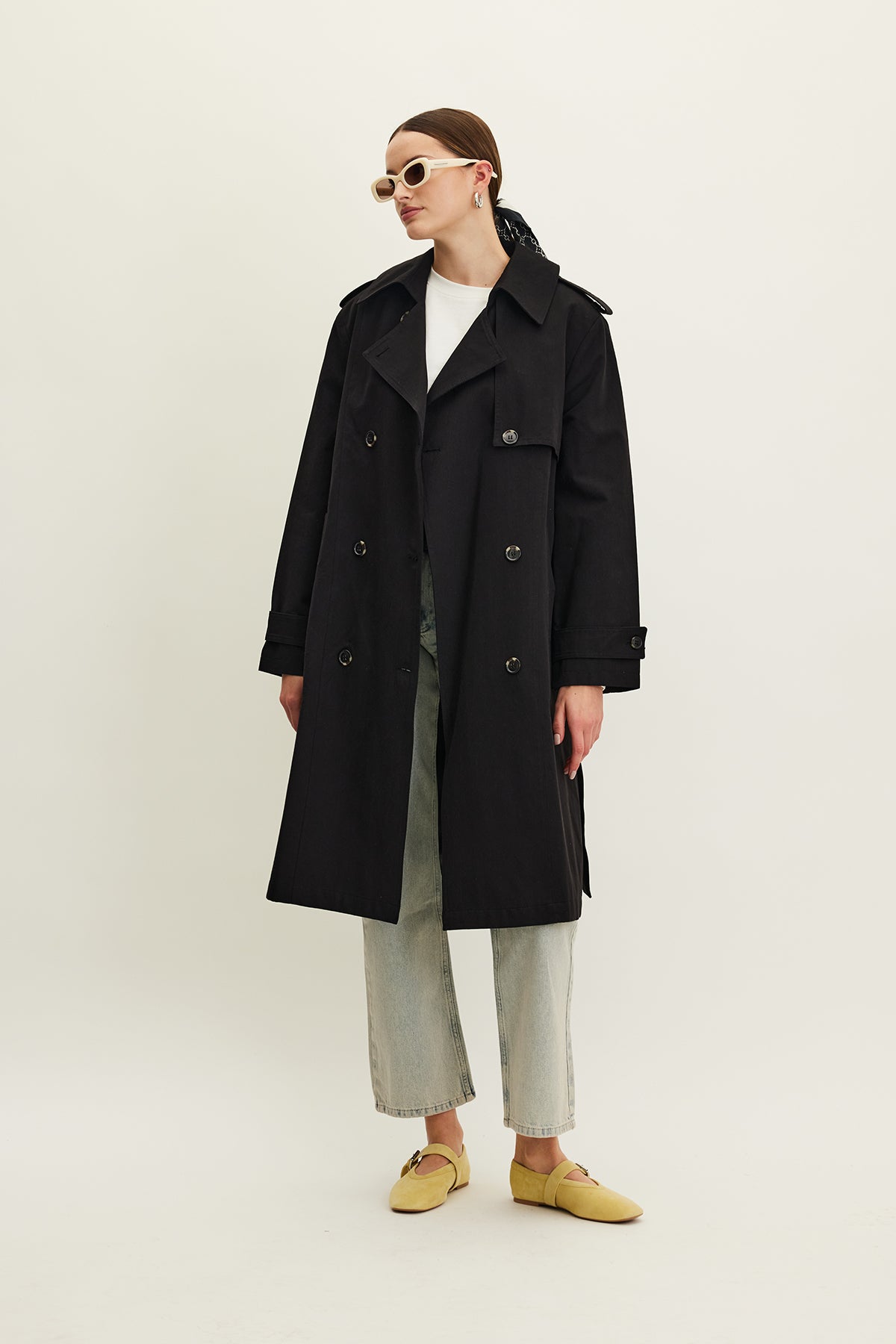 Anika Belted Trench Coat Black