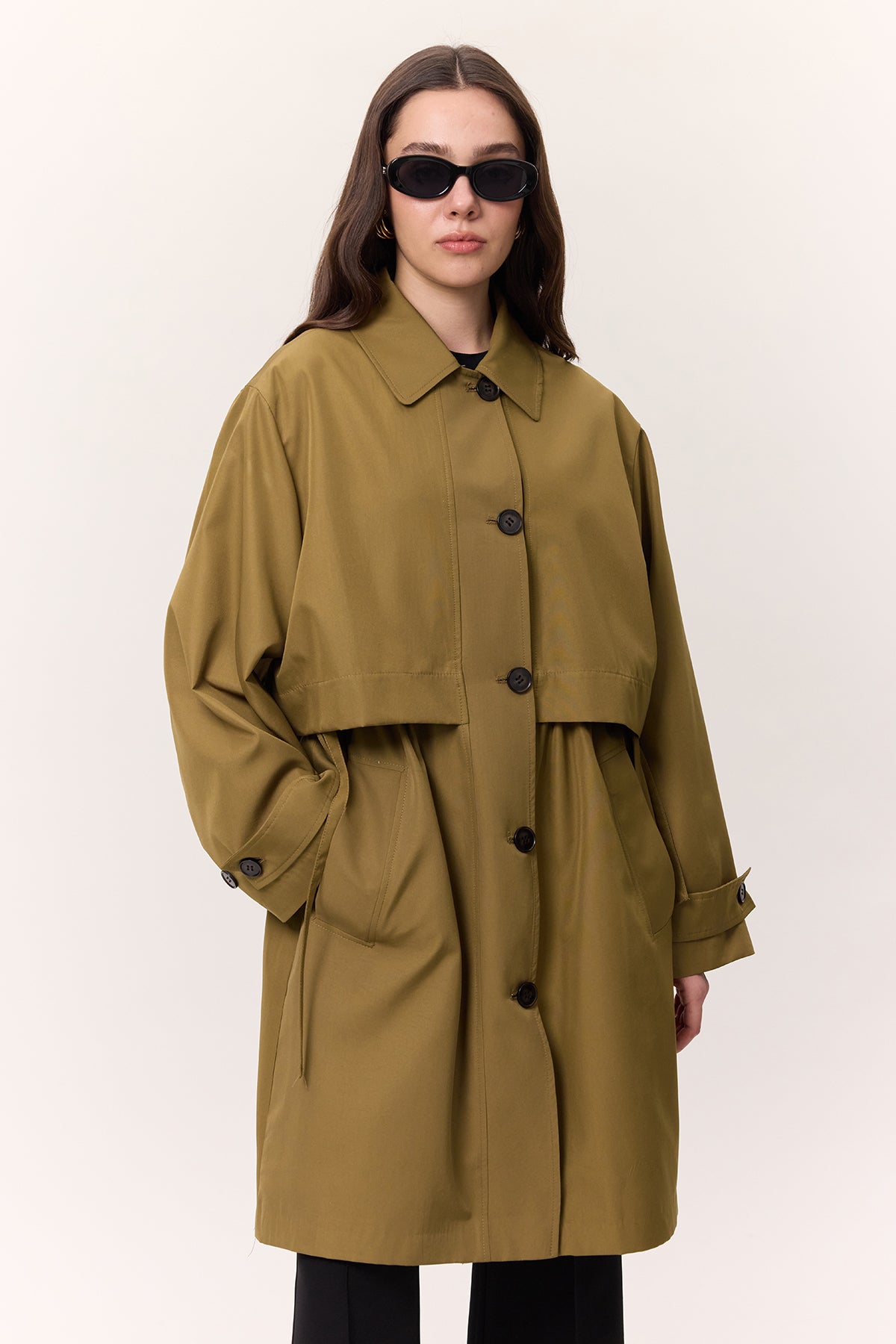 Adjustable Waist Lightweight Trench Coat Olive Green