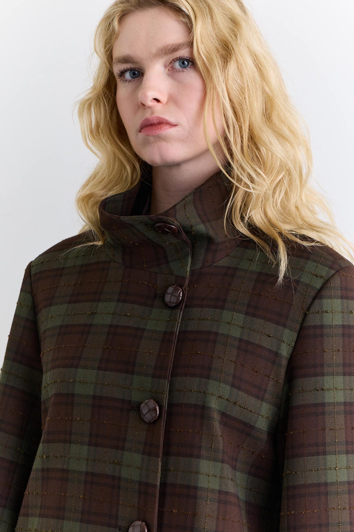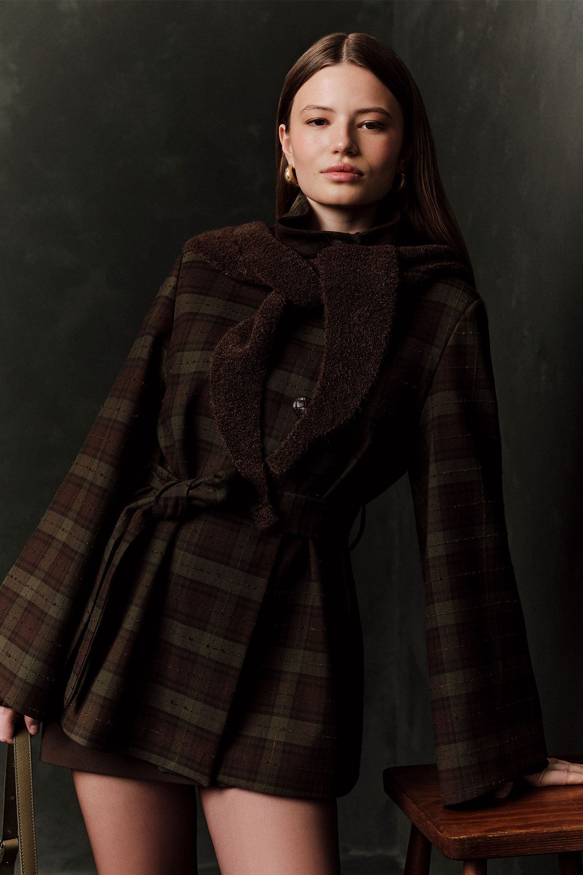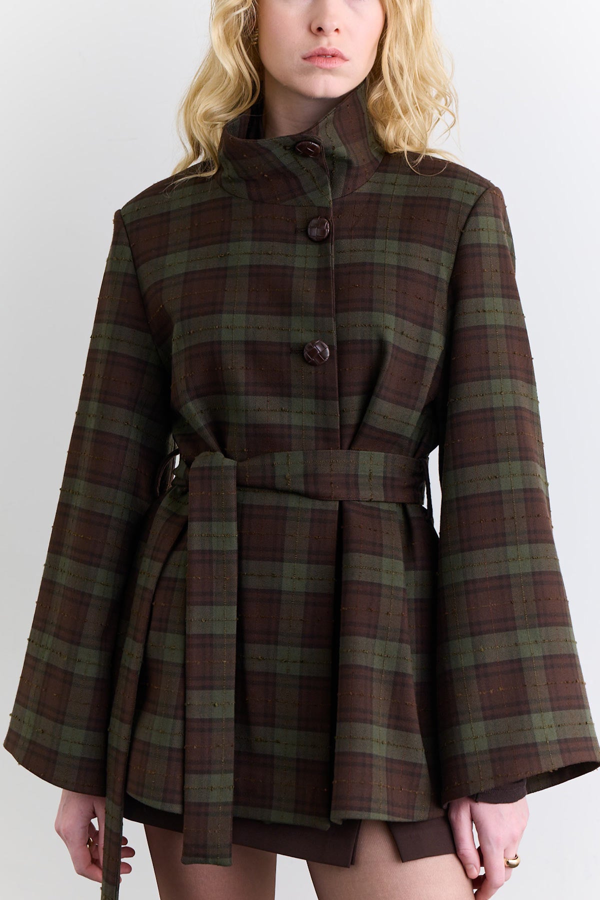 Wide Sleeve Belted Jacket Plaid