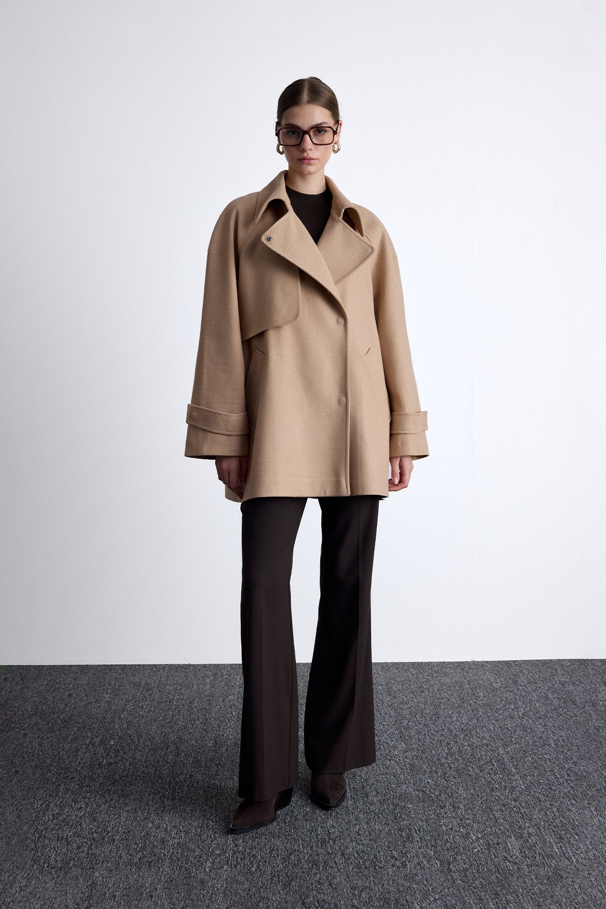 Mari Double Breasted Trench Coat Camel